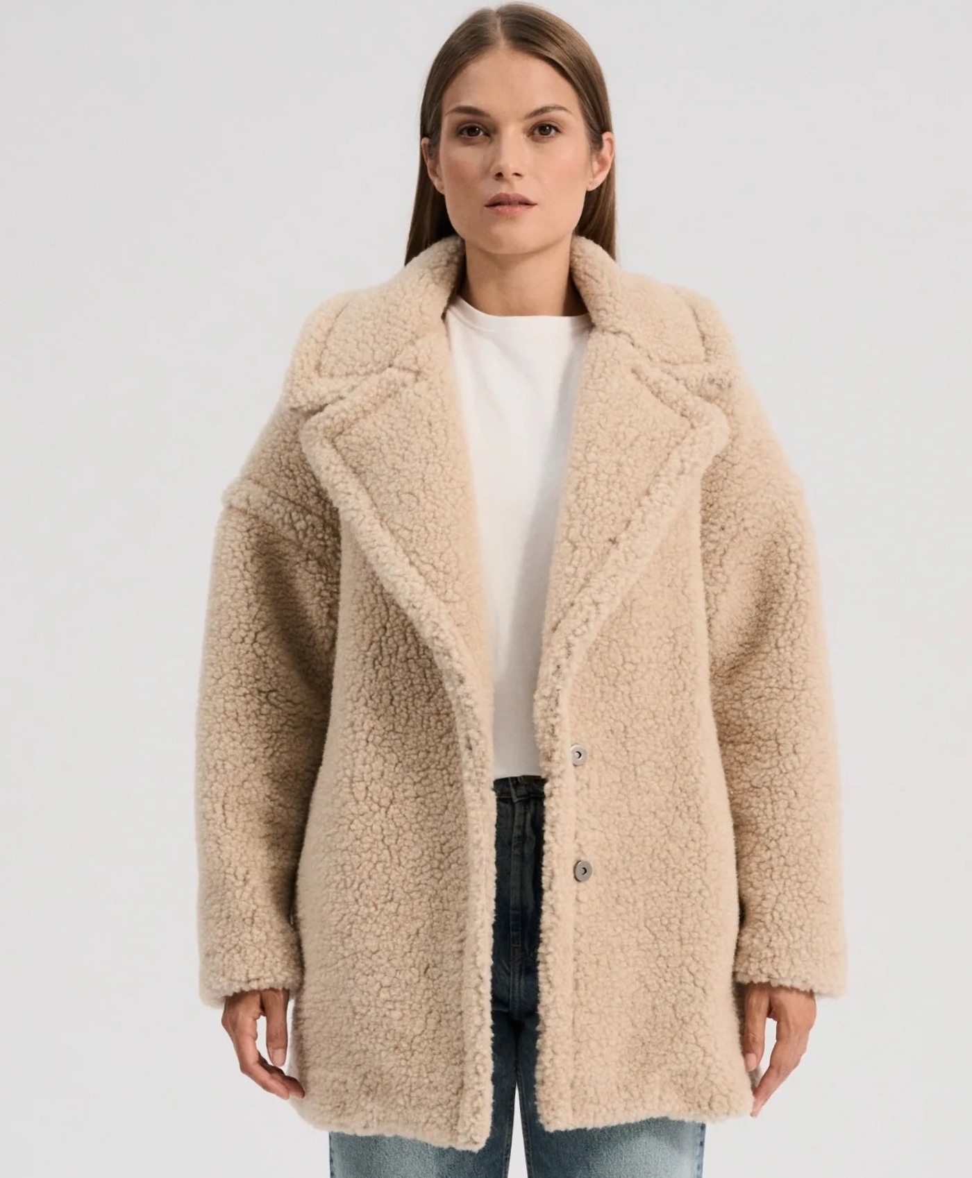 Alwero Damen Jacke - Teddy mittlere Länge - sand brown