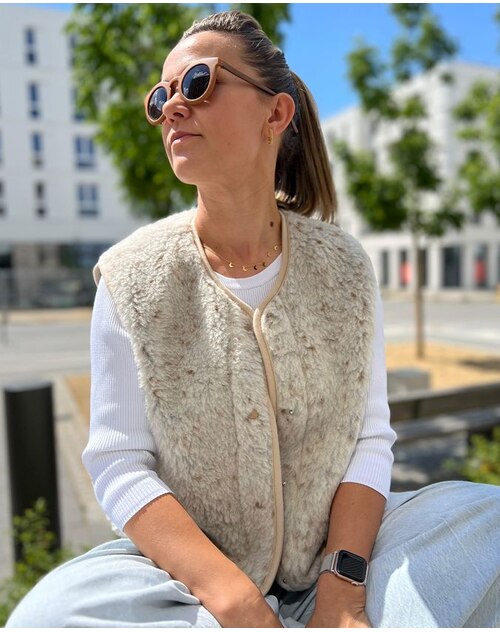 Sehr schöne Weste, die Qualität überzeugt. Ich habe mir die Variante mit den Dots bestellt, die Farbe sieht in echt allerdings etwas anders aus. Es sind auch grau/blaue Punkte vorhanden, passt damit aber super zu einer Jeans. Außerdem habe ich meine normale Größe bestellt und finde die Armausschnitte etwas klein, wenn man mal einen dickeren Pullover drunterziehen möchte. Daher würde ich nächstes Mal eine Nummer größer bestellen, ich glaube nicht, dass die Weste dann zu oversized wirkt, so ist sie relativ passgenau, auch wenn ich manchmal sogar zwischen zwei Größen bin und jetzt schon die Größere bestellt habe.
