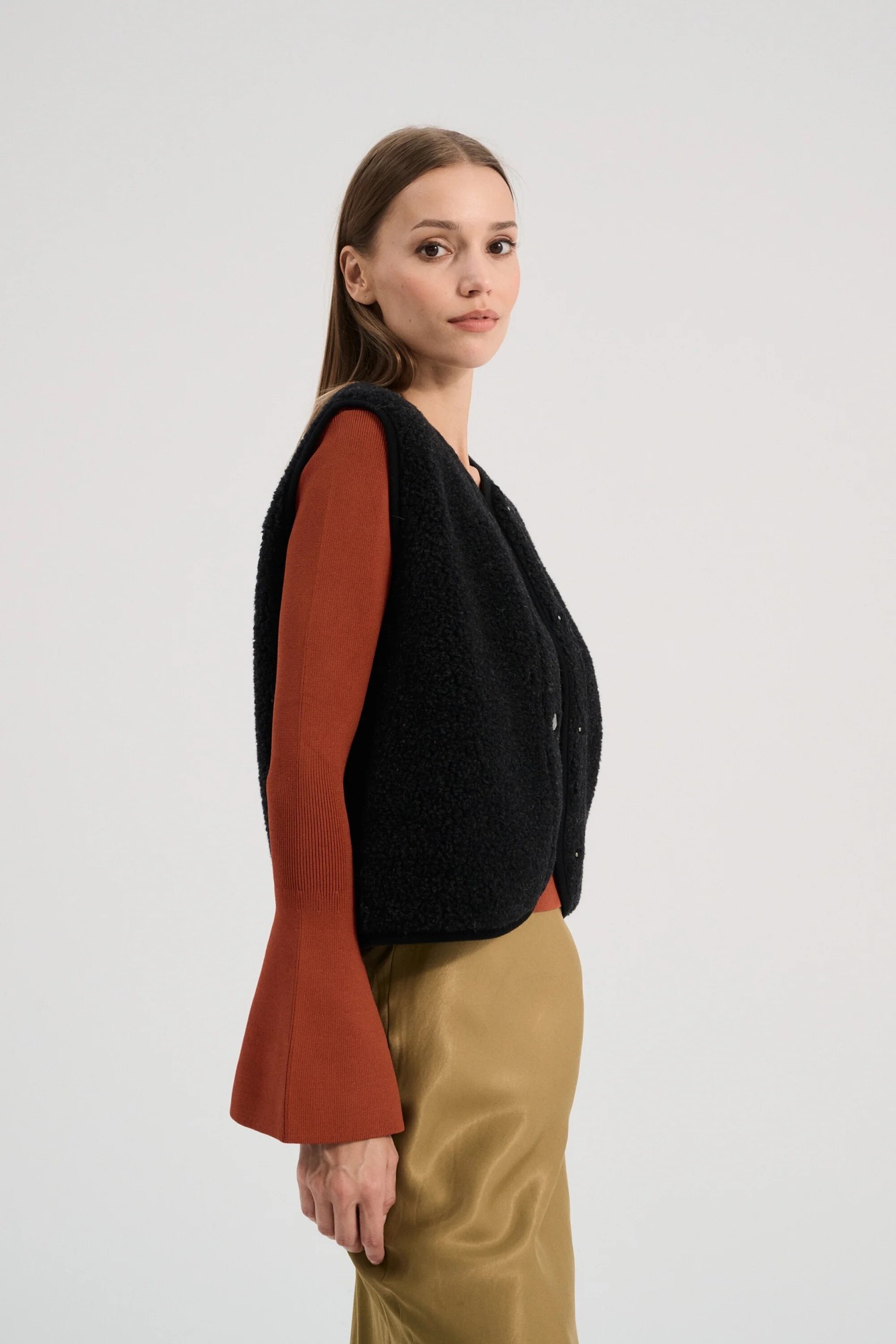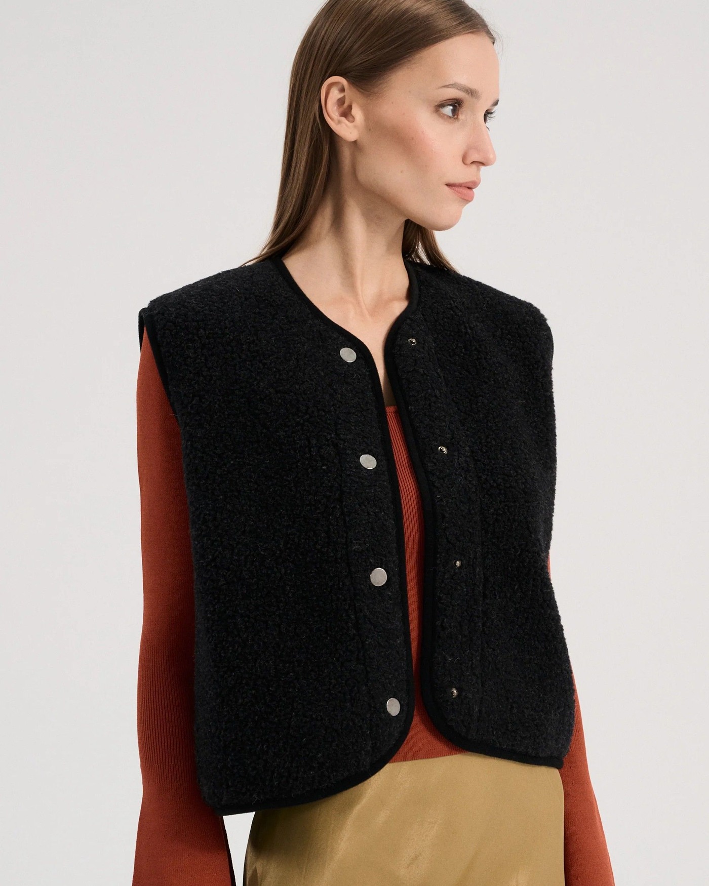 Alwero Damenweste aus Wolle mit Druckknöpfen "TYB" - Deep Black