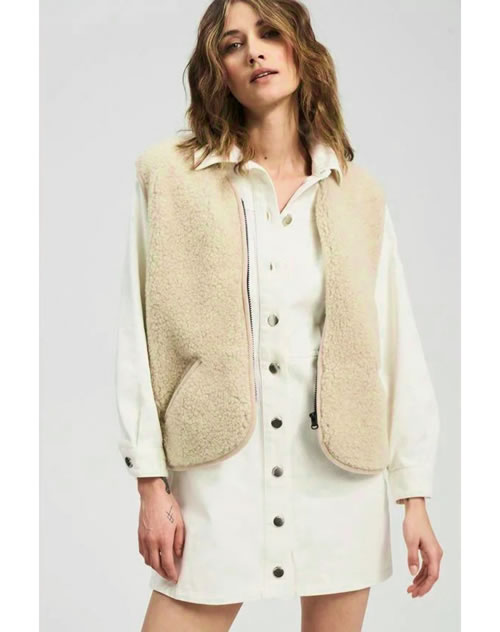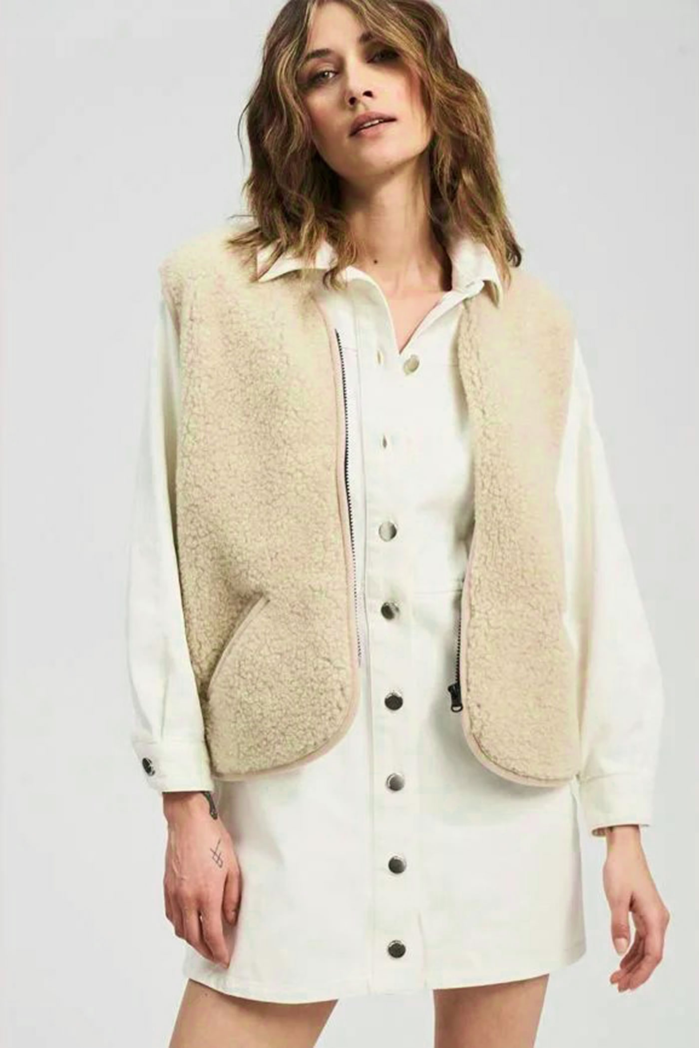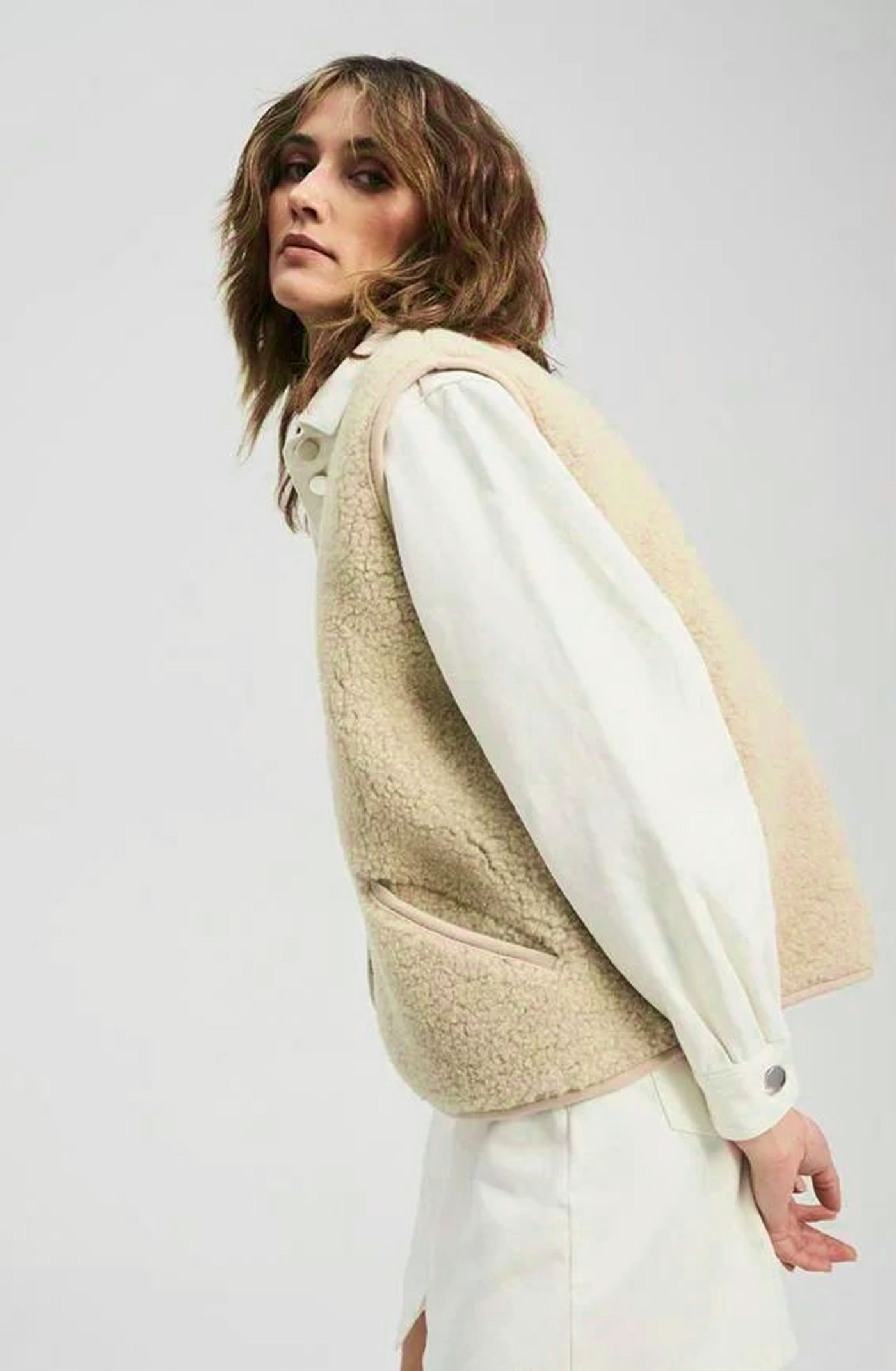 Sie ist aus 100 % ultraleichter Wolle in einem Fleece mit Schaffellstruktur gearbeitet.
