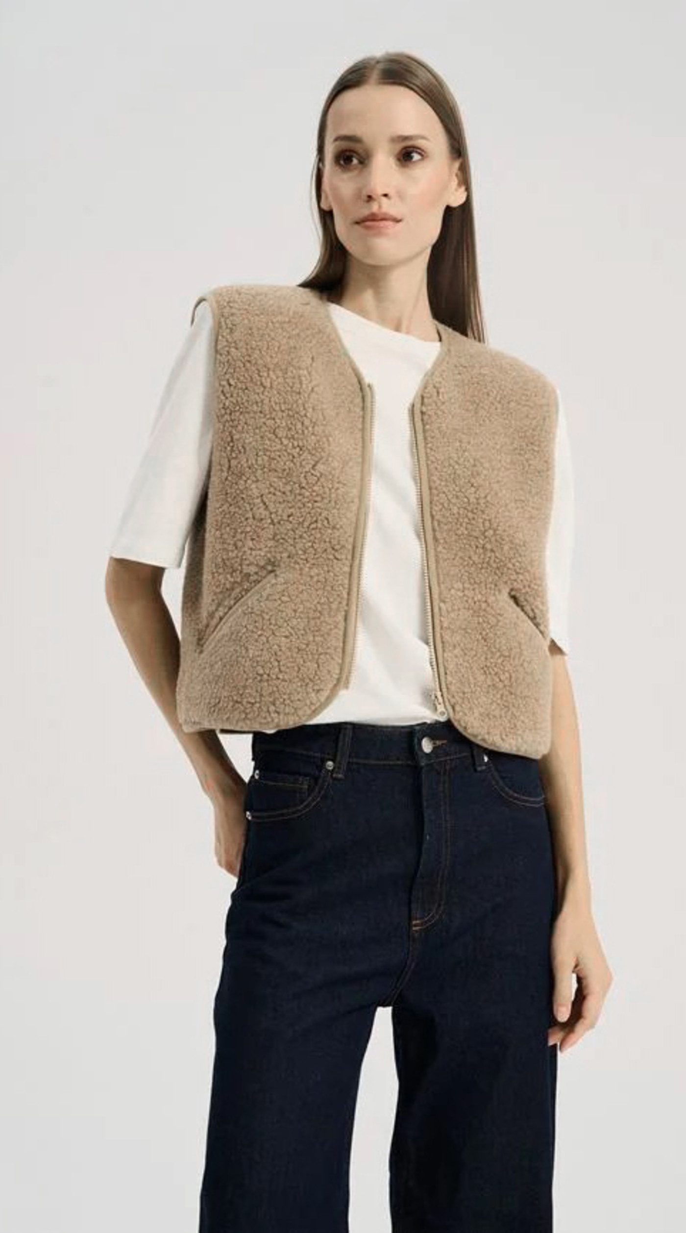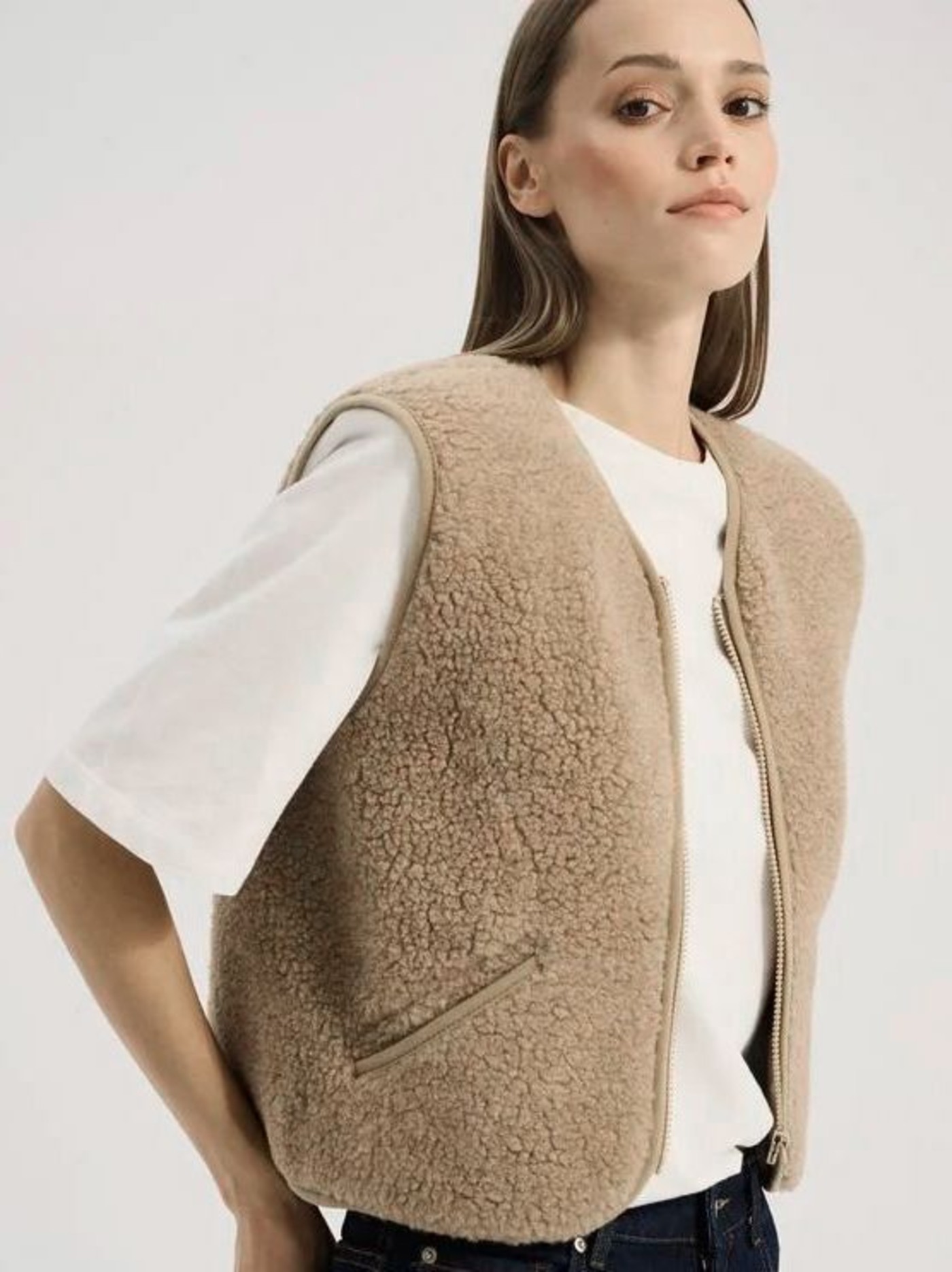 Sie ist aus 100 % ultraleichter Wolle in einem Fleece mit Schaffellstruktur gearbeitet.