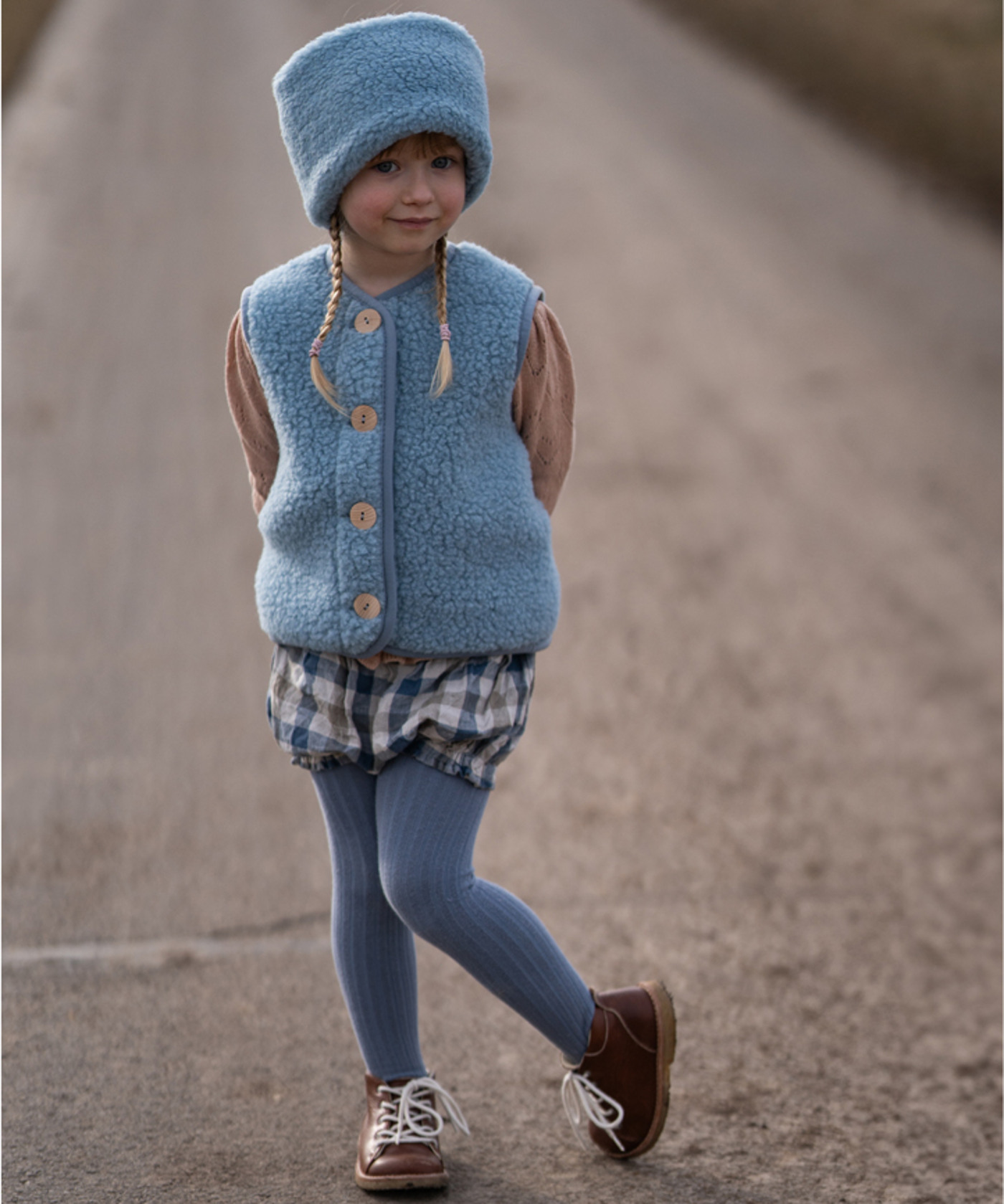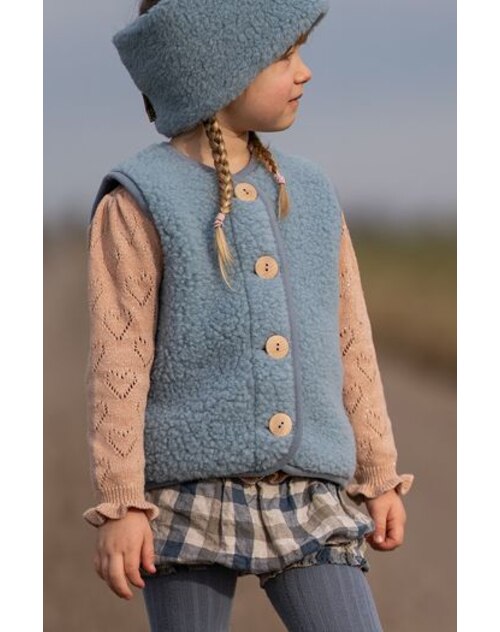 Alwero Kinderweste mit Holzknöpfen aus Wolle "PO" - Icy Blue