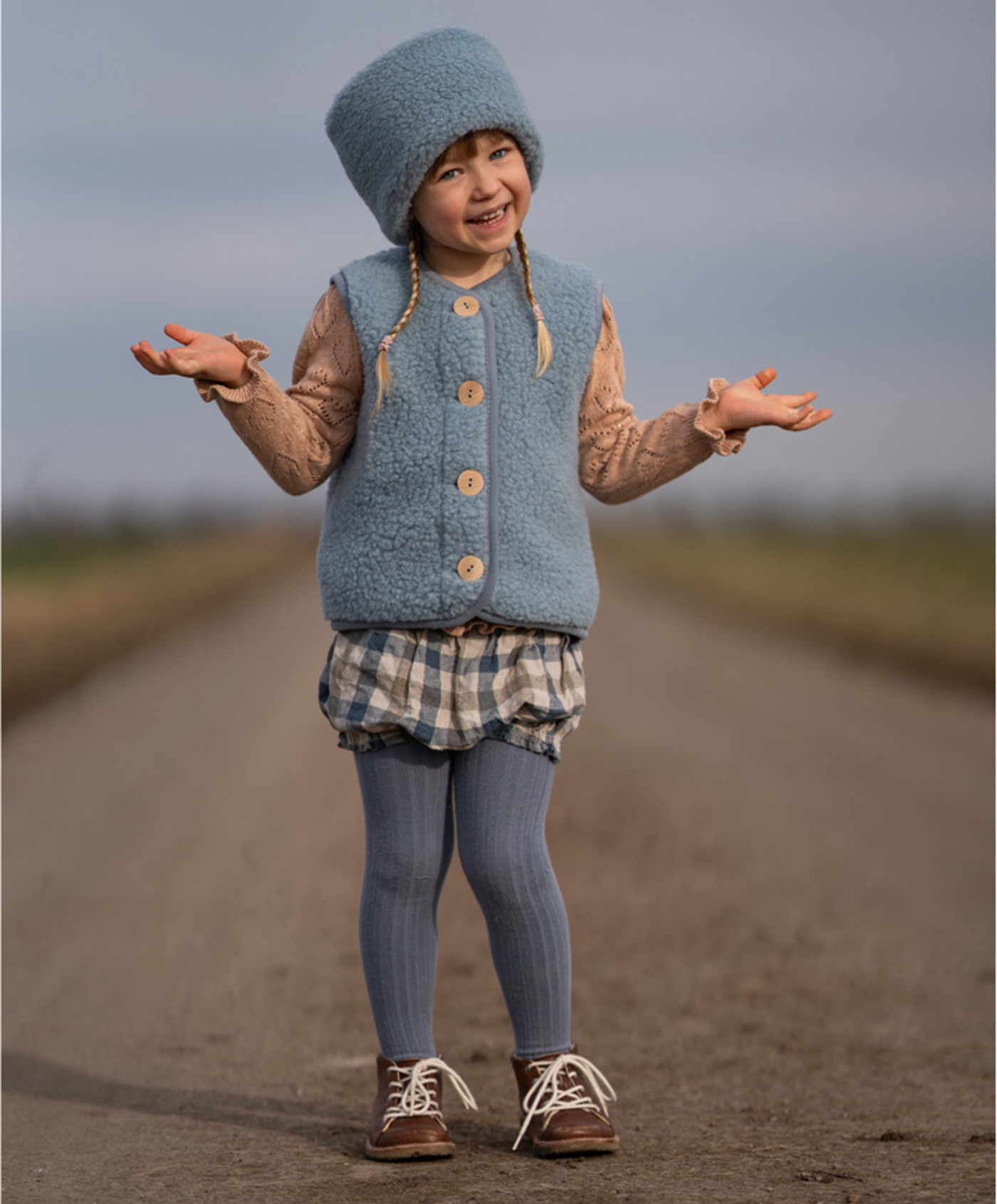 Das kuschelige Material ist weich und atmungsaktiv. Die funktionale Wollweste lässt sich das ganze Jahr prima kombinieren und hält kleine und große Kinder immer zuverlässig warm.