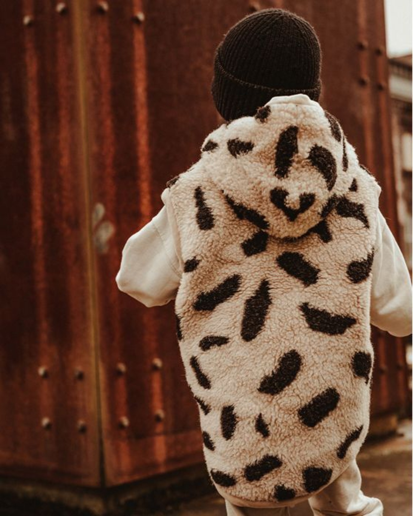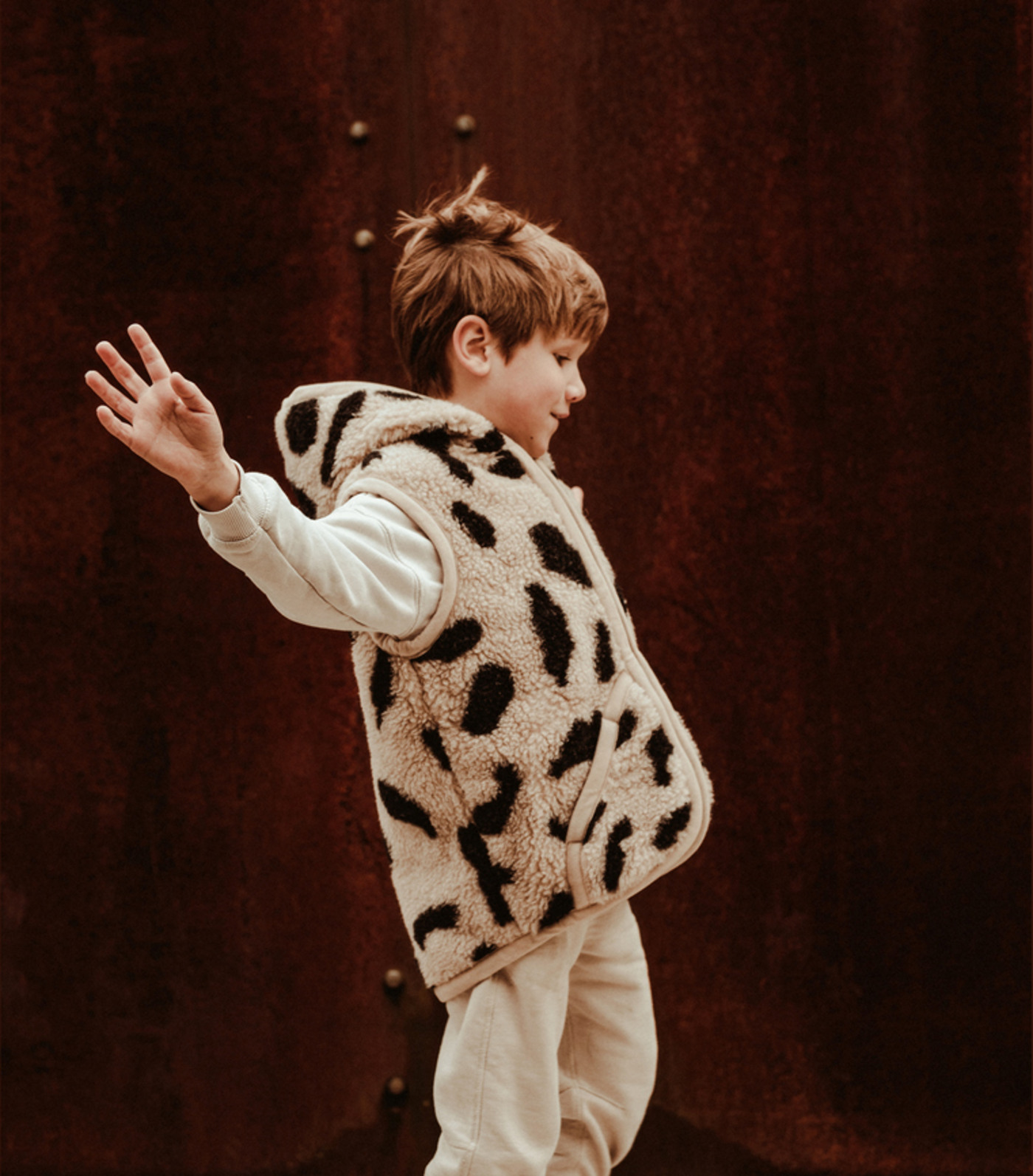 Alwero Kinderweste mit Kapuze aus Wolle Robby - Leo Gepard