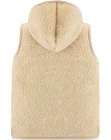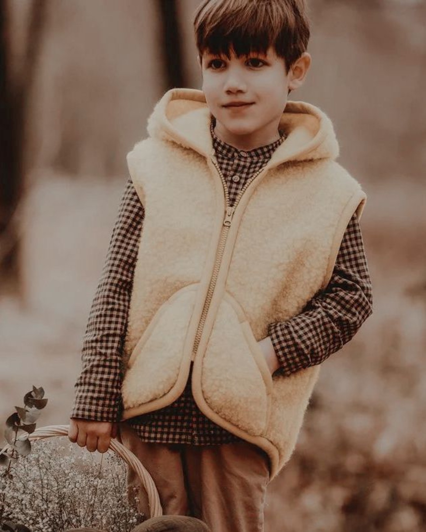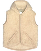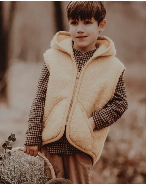 Das kuschelige Material ist weich und atmungsaktiv. Die funktionale Wollweste mit großer Kapuze lässt sich das ganze Jahr prima kombinieren und hält kleine und große Kinder immer zuverlässig warm.
