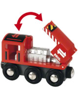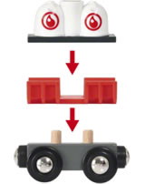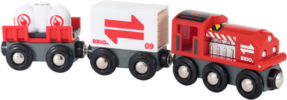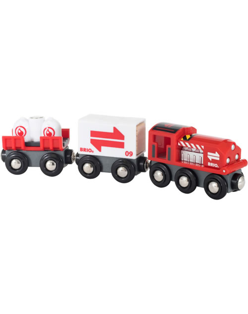 Unser neuer roter großer Güterzug ist da – der Nachfolger von Generationen an BRIO Zügen, mit denen Generationen von Kindern gespielt haben. Dieser neue Güterzug besteht aus einer Lok mit Klappe und zwei Waggons, einem mit einer Holzladung und einem mit einer Tankladung. Der große BRIO Güterzug ist perfekt für alle Szenarien der BRIO World geeignet.