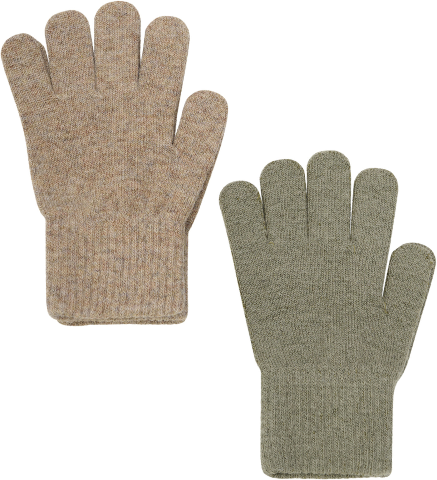 In diesem 2er-Pack befinden sich ein Paar hübsche sage-grüne Handschuhe und ein klassisches sandfarbenes Paar 🤍