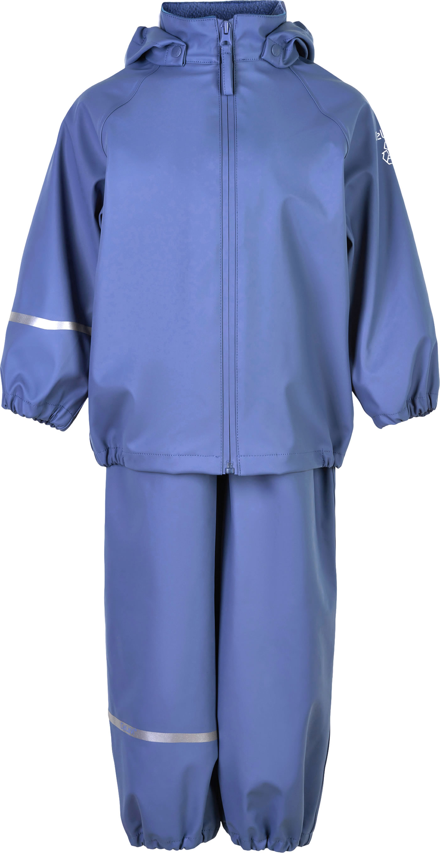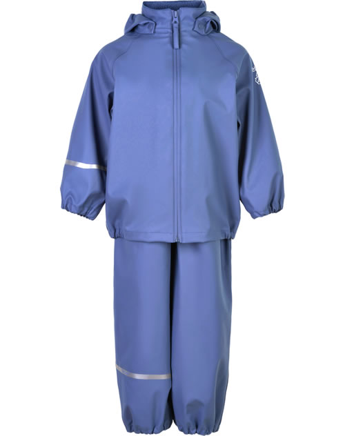 Die Regenhose hat bis Größe 98/104 verstellbare elastische Hosenträger und Druckknöpfe an jeder Seite, ab dieser Größe hat die Hose einen bequemen Gummibund. Alle Größen haben verstellbare elastische Fußriemen, die die Regenhose beim Herumspringen im Wasser eng an den Gummistiefeln halten. Auch in der Übergangszeit lässt sich das Regen-Set tragen, zum Beispiel mit warmer Fleece-Bekleidung darunter.