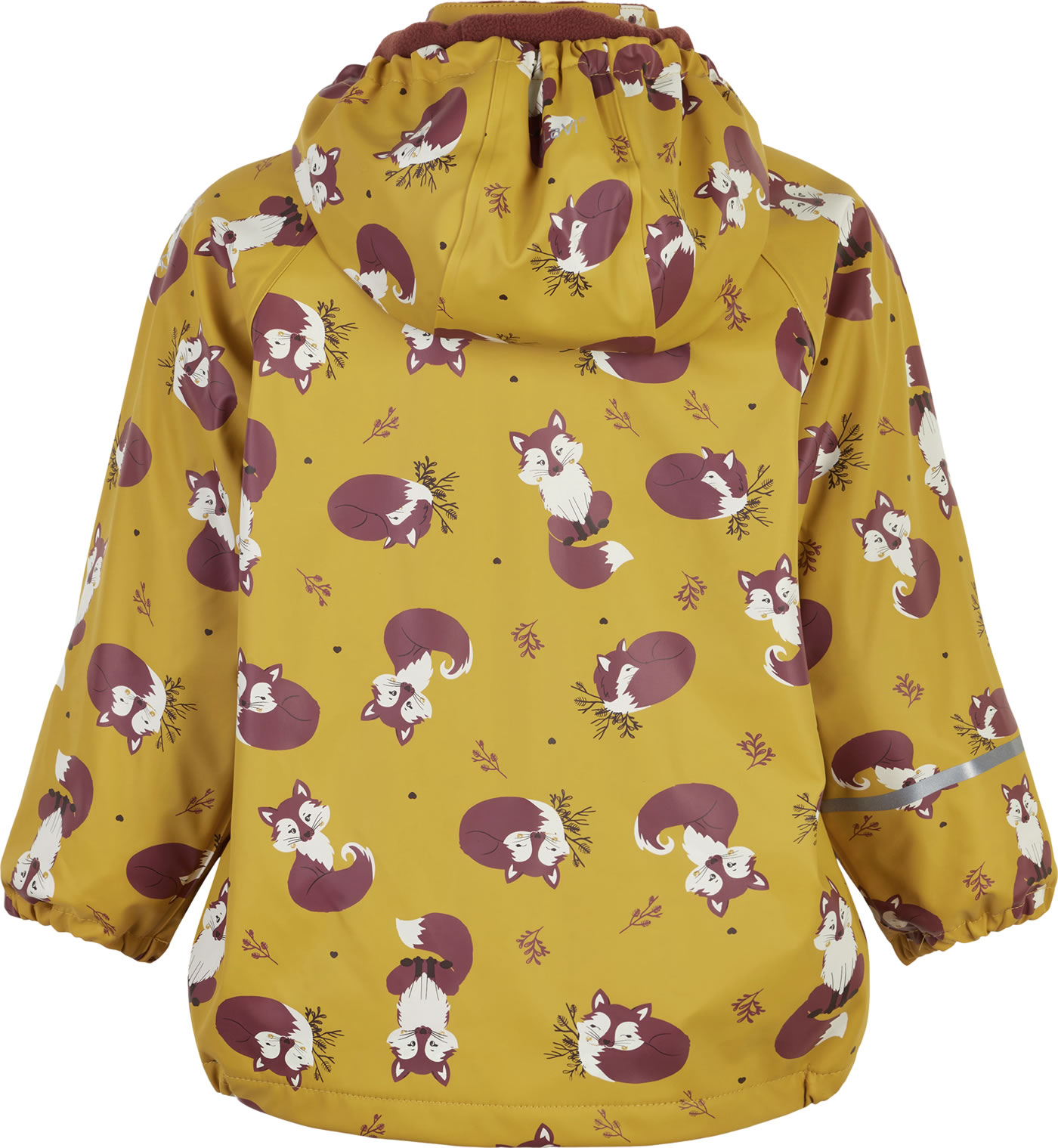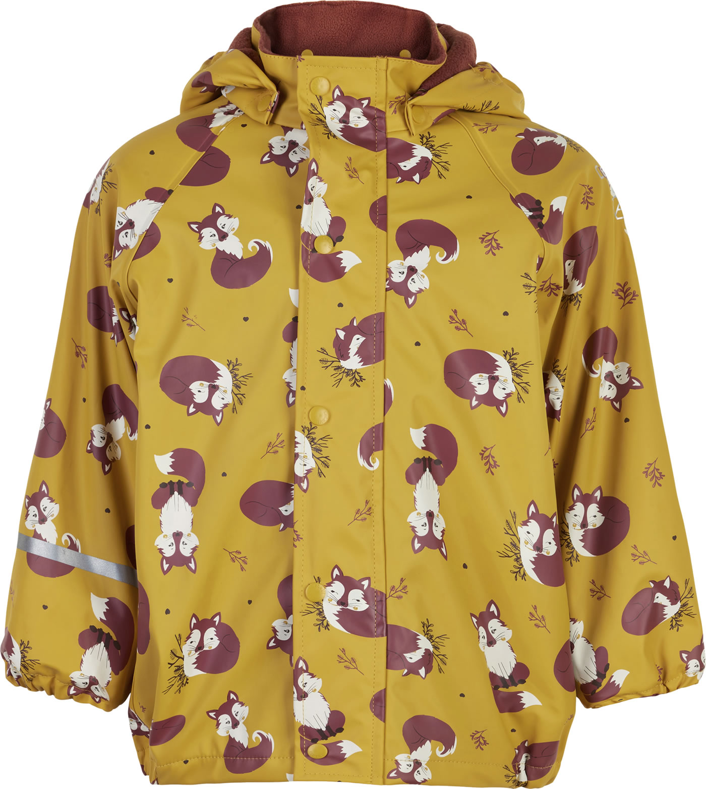 PU-Regenjacke mit abknöpfbarer Kapuze von CELAVI. Die schön geschnittene Jacke mit dem lustigen Fuchs wird zu einem idealen Begleiter im Kindergarten oder in der Freizeit. Gummibündchen an den Ärmeln sorgen für einen guten Sitz und der Reflektionsstreifen für eine gute Sichtbarkeit im Dunkeln. Die Jacke ist komplett mit warmem Fleece gefüttert.