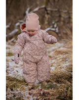 Mit diesem tollen Anzug von CELAVI mit abknöpfbarer Kapuze ist Ihr Kind gegen Wasser und Wind geschützt. In einem schönen Lachs-Ton und mit hübschem floralen Allover-Print ist der Schneeoverall ein absoluter Hingucker! Die Ärmel sind mit einem Gummi-Bund versehen. Das Hochrutschen der Hosenbeine wird durch einen elastischen Gummi-Bund und einen längenverstellbaren Steg verhindert, der unter die Gummistiefel gesteckt werden kann. Reflektierende Streifen geben Sicherheit an trüben Tagen und in der Dunkelheit. Der Overall ist mit weichem Fleece ausgestattet. Die zwei Reißverschlüsse erleichtern das An-und Ausziehen.