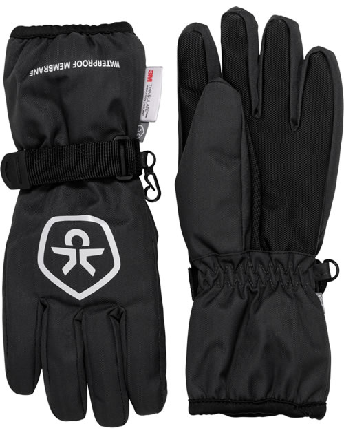Bestens gewappnet für die kalten Tage mit den warmen Finger-Handschuhen in schwarz von COLOR KIDS. Das wasser- und schmutzabweisende Paar ist an den Handflächen beschichtet und lässt sich mit einem Klettverschluss in der Weite regulieren. Mit reflektierenden Details. Von Innen sind die Handschuhe mit warmen Fleece gefüttert. Ein Gummibund sorgt für einen guten Sitz. Das Material ist atmungsaktiv und schnell trocken nach einem Tag im Schnee.
