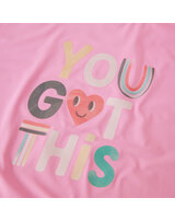 Dieses pinke kurzärmlige Sportshirt hat einen Rundhalsausschnitt und begeistert mit dem motivierenden Aufdruck auf der Vorderseite. 🙂