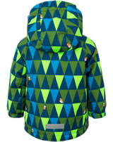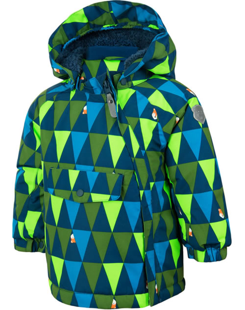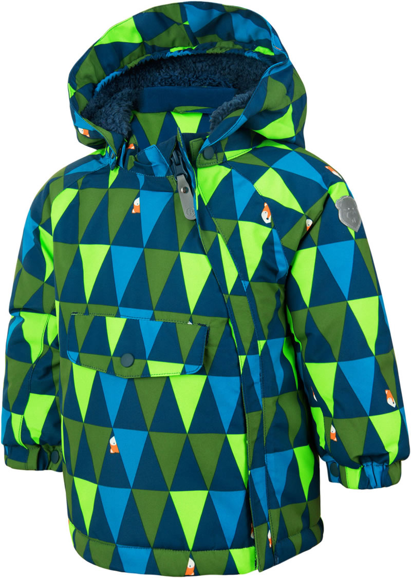 Mit dieser coolen Jacke von COLOR KIDS wird der Ausflug in den Schnee zu einem riesen Spaß. Auf dem peppigen Grafik-Muster befinden sich kleine Füchse. Das kuschelig weiche Innenfutter hält warm und zudem ist die Schnee-Jacke auch wasserdicht und winddicht. Die Kapuze kann abgeknöpft werden. Die Jacke ist mit BIONIC-FINISH® ECO ausgestattet. Diese besondere Beschichtung zeichnet sich durch seine wasser- und schmutzabweisende Wirkung aus. Zusätzlich gestaltet sich die Textilpflege durch die Beschichtung kinderleicht, die Jacke ist atmungsaktiv, sowie wind- und wasserdicht. Die Farben sowie das Gewebe wirken lange wie neu. Alle Nähte sind versiegelt. Reflektive Details für mehr Sicherheit. Der Reißverschluss der Jacke ist mit einer Abdeckung ausgerüstet die nicht nur vor Wind sondern auch vorm Kratzen und Scheuern am Kinn schützt. Die Tasche am Bauch kann mit einem Druckknopf verschlossen werden.