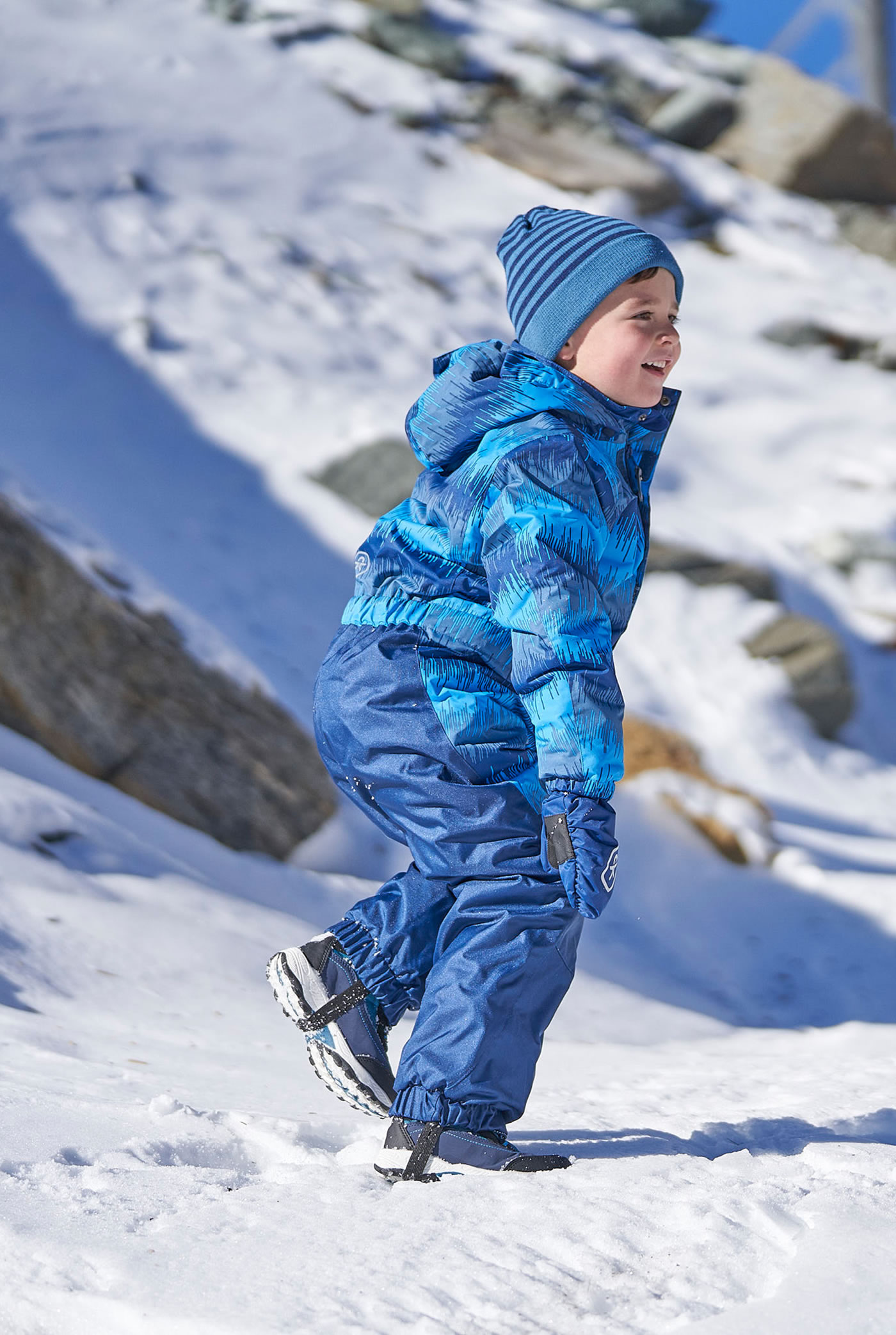 Warmer Schneeanzug mit Reißverschluss von COLOR KIDS mit einem tollen Muster. Die Kapuze kann abgeknöpft werden und hat ein dunkelblaues Innenfutter. Der Overall ist mit BIONIC-FINISH® ECO ausgezeichnet. Diese besondere Beschichtung zeichnet sich durch seine wasser- und schmutzabweisende Wirkung aus. Zusätzlich gestaltet sich die Textilpflege durch die Beschichtung kinderleicht, der Overall ist atmungsaktiv, sowie wind- und wasserdicht. Die Farben sowie das Gewebe wirken lange wie neu. Alle Nähte sind versiegelt. Reflektive Details für mehr Sicherheit. Abnehmbare Fußstege bieten zusätzlichen Halt und Schutz vor Nässe. Reflektoren am Ärmel und der Rückseite dienen der besseren Sichtbarkeit.