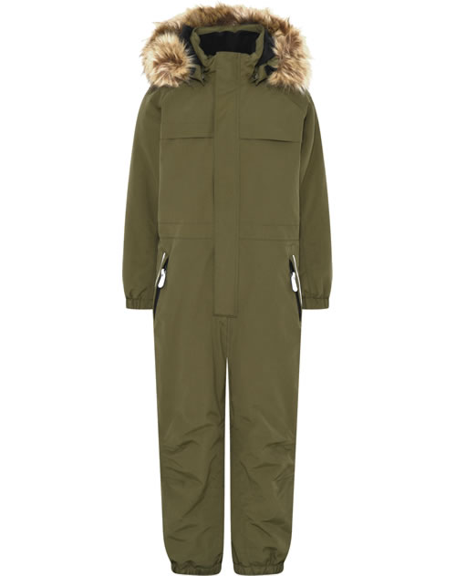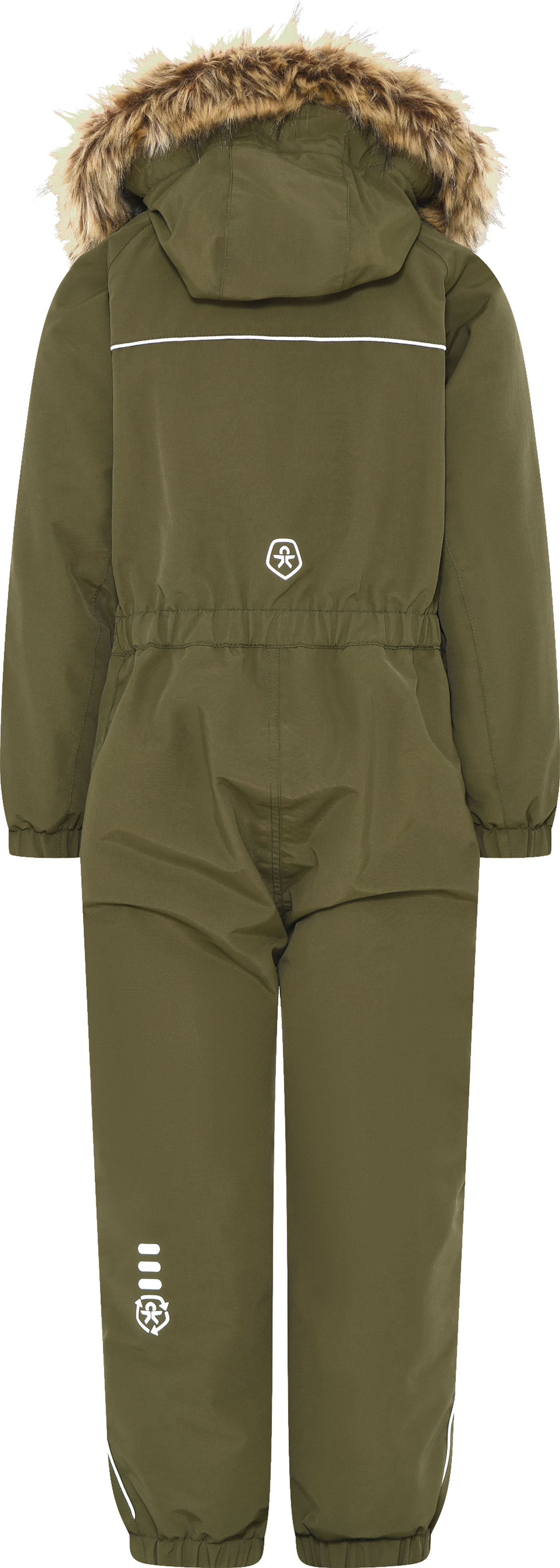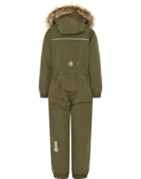 Warmer Schneeanzug mit einem YKK-Reißverschluß und Klettverschlüssen von COLOR KIDS. Die Kapuze des Winteroveralls kann abgeknöpft werden und ebenso der Kunstfellbesatz. Der Overall ist mit BIONIC-FINISH® ECO ausgezeichnet. Diese besondere Beschichtung zeichnet sich durch seine wasser- und schmutzabweisende Wirkung aus. Zusätzlich gestaltet sich die Textilpflege durch die Beschichtung kinderleicht, der Overall ist atmungsaktiv, sowie wind- und wasserdicht. Die Farben sowie das Gewebe wirken lange wie neu. Alle Nähte sind versiegelt. Abnehmbare Fußstege an den Beinen bieten zusätzlichen Halt und Schutz vor Nässe. Reflektoren am Ärmel und der Rückseite dienen der besseren Sichtbarkeit. Kapuze und Rückenbereich sind mit weichem Fleece gefüttert.