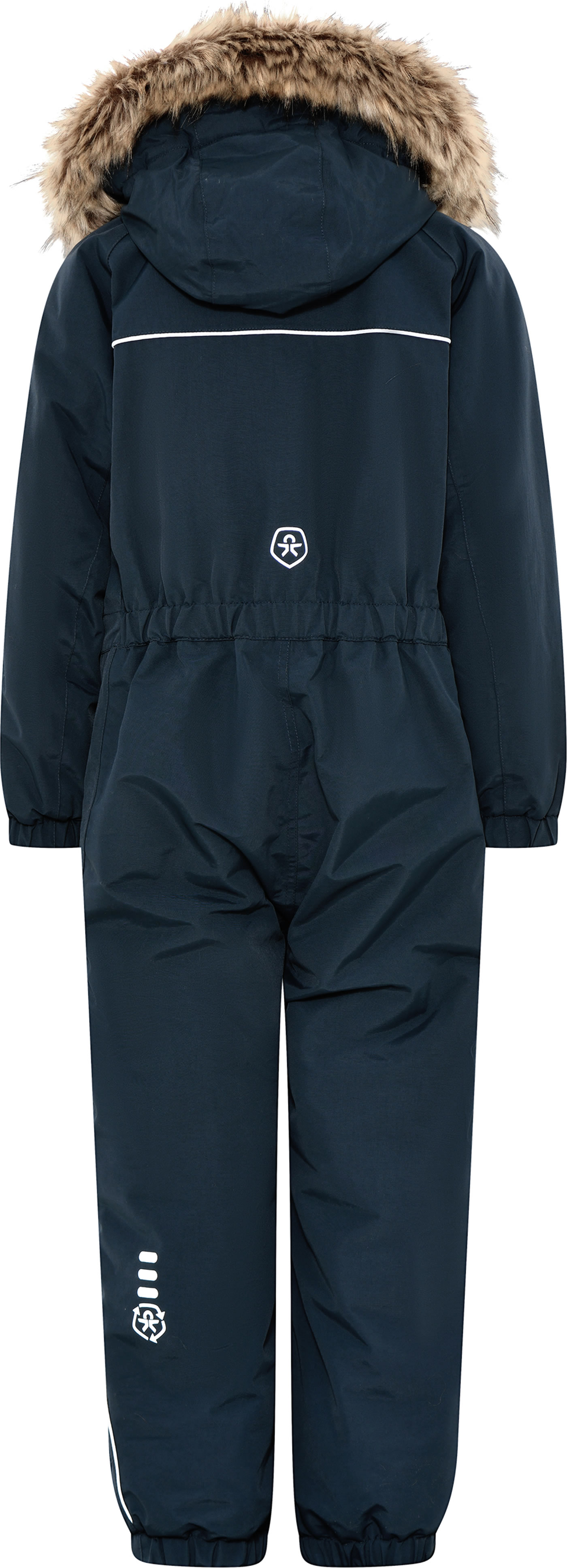 Warmer Schneeanzug mit einem YKK-Reißverschluß und Klettverschlüssen von COLOR KIDS. Die Kapuze des Winteroveralls kann abgeknöpft werden und ebenso der Kunstfellbesatz. Der Overall ist mit BIONIC-FINISH® ECO ausgezeichnet. Diese besondere Beschichtung zeichnet sich durch seine wasser- und schmutzabweisende Wirkung aus. Zusätzlich gestaltet sich die Textilpflege durch die Beschichtung kinderleicht, der Overall ist atmungsaktiv, sowie wind- und wasserdicht. Die Farben sowie das Gewebe wirken lange wie neu. Alle Nähte sind versiegelt. Abnehmbare Fußstege an den Beinen bieten zusätzlichen Halt und Schutz vor Nässe. Reflektoren am Ärmel und der Rückseite dienen der besseren Sichtbarkeit. Kapuze und Rückenbereich sind mit weichem Fleece gefüttert.
