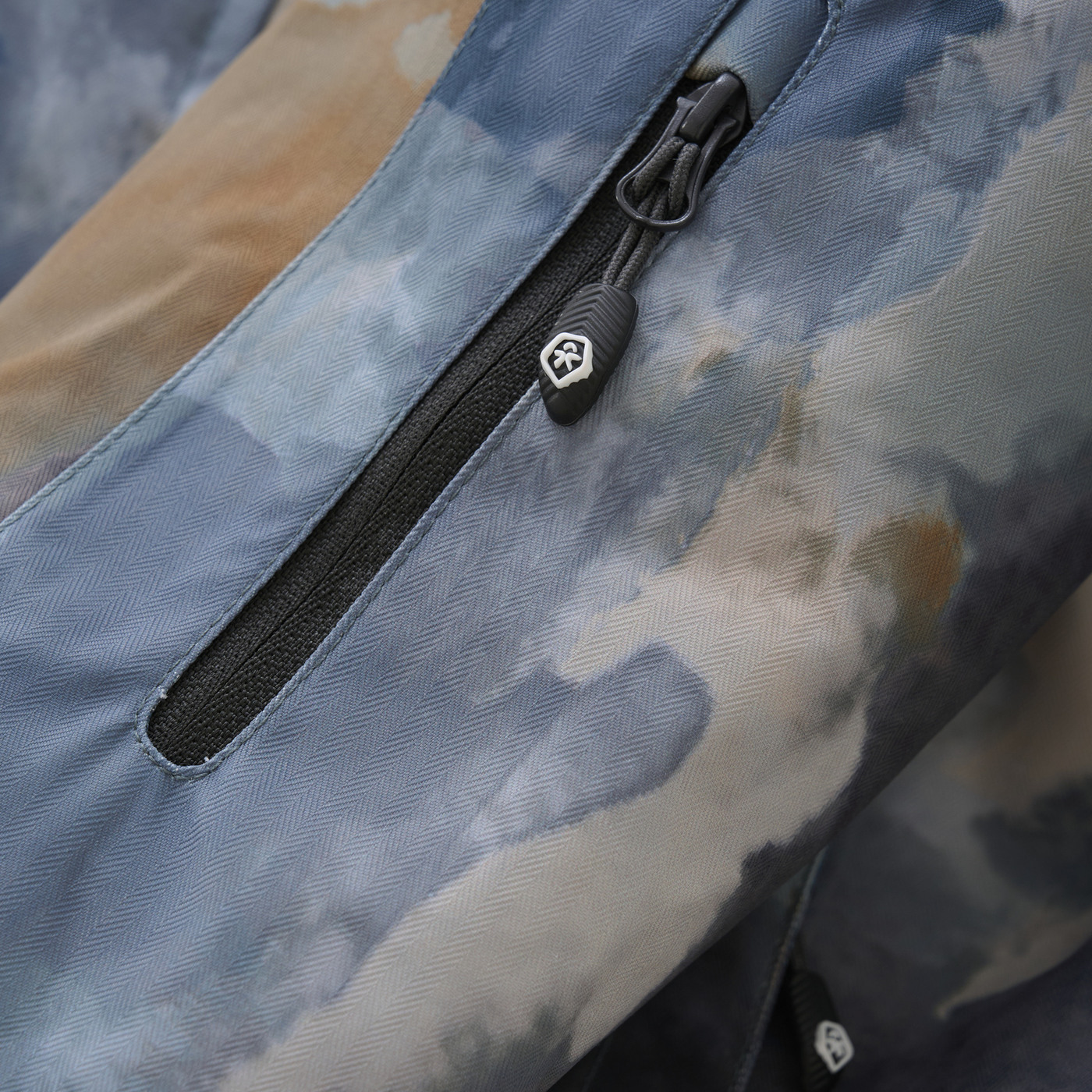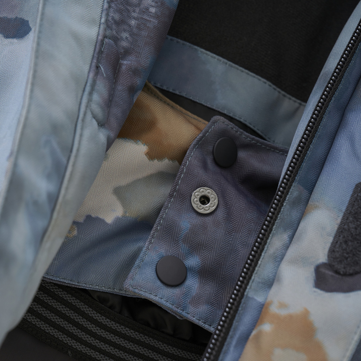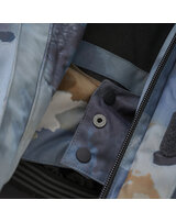 Im linken Ärmel befindet sich eine Tasche für Liftpässe und am unteren Saum ein innenliegender Schneefang mit Druckknöpfen.