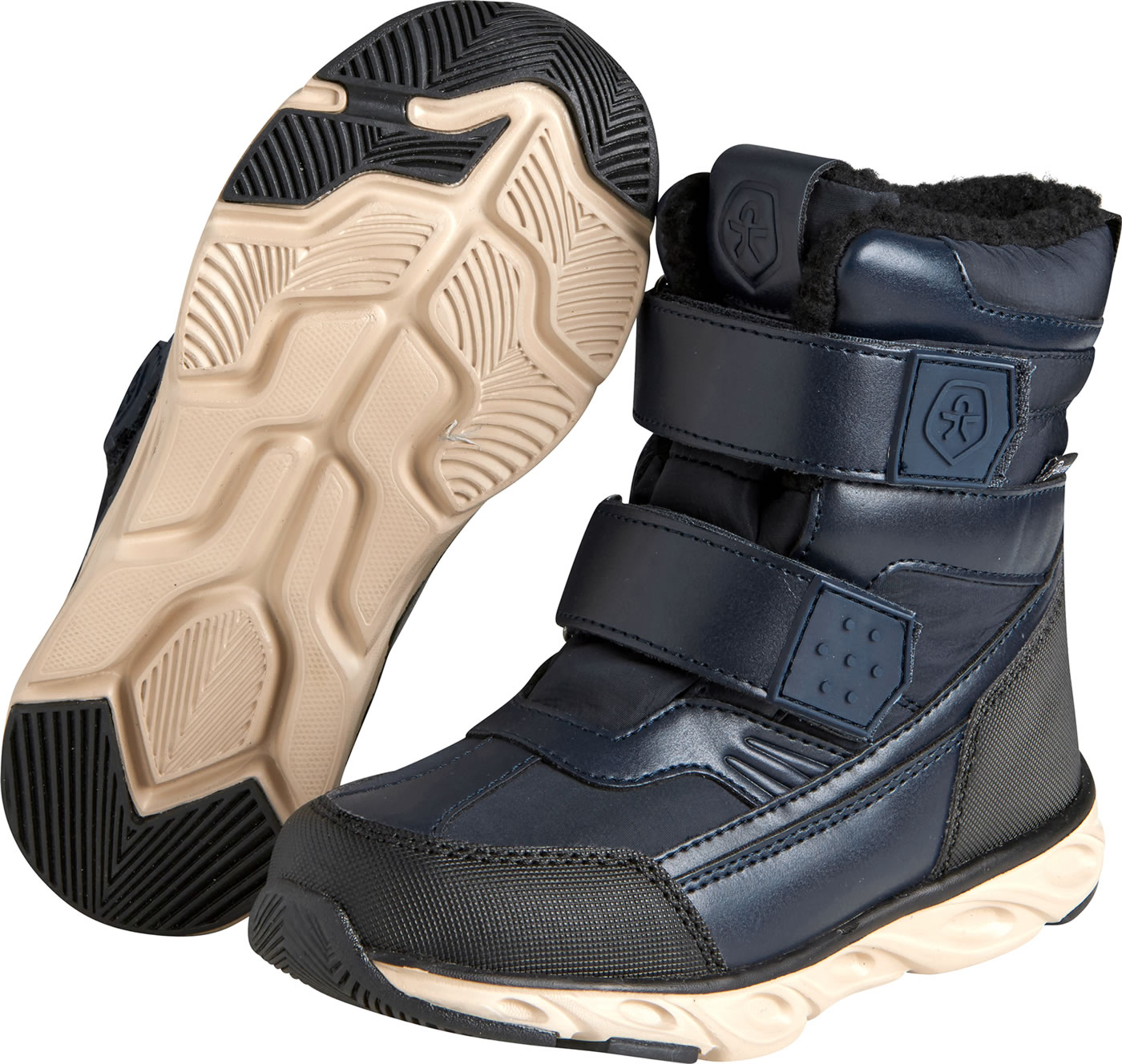 Mit dem COLOR KIDS Winterschuh ist man für den Winter gut gewappnet! Kalte und feuchte Füße sind Geschichte. Die Boots mit hohem Schaft sind wasserdicht und winddicht bis zu -10 °C. Außerdem sind sie schmutzabweisend. Durch die beiden Klettriegel können die Schuhe optimal an die Größe des Fußes angepasst werden. Die Schuhe haben eine verstärkte Spitze und die Schlaufe hinten hilft beim An- und Ausziehen. Gefüüttert sind die Boots mit weichem Teddyplüsch und die Innensohle ist herausnehmbar. Der Reflektor sorgt für mehr Sicherheit. Die TPR-Sohle thermoplastisches Gummi) ist flexibel und bietet dadurch hohen Komfort.