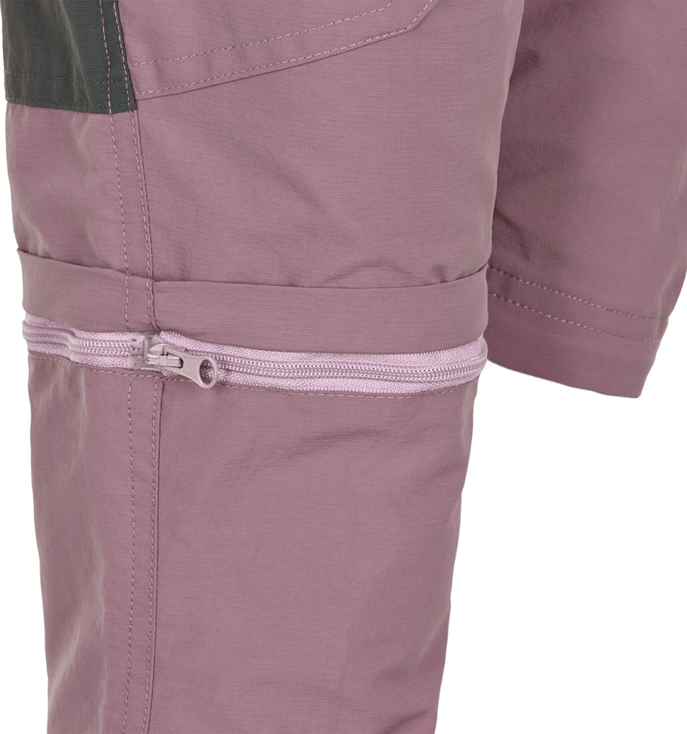 Wasserabweisende Zip Off-Hose aus leichtem Material von COLOR KIDS in rosa. Die Beine lassen sich mit Hilfe eines Reißverschlusses abtrennen, so kann das Modell auch in der Sommerzeit als kurze Hose getragen und bei Bedarf wieder verlängert werden.