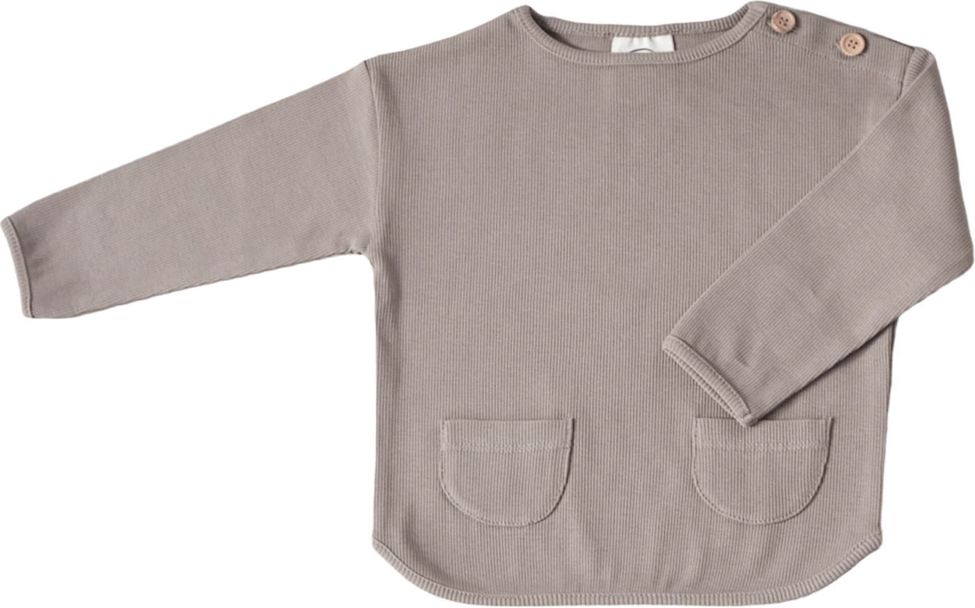 Schönes Sweatshirt aus GOTS-zertifizierter Bio-Baumwolle mit einer feinen Rippenstruktur von COSY ROOTS. Der leicht oversize geschnittene Sweater passt sich dem Körper an und ist durch das samtweiche Material angenehm zu tragen. Bis Größe 74/80 mit Knöpfen am Halsausschnitt. Ein besonderes Detail sind die zwei kleinen Taschen auf der Vorderseite.