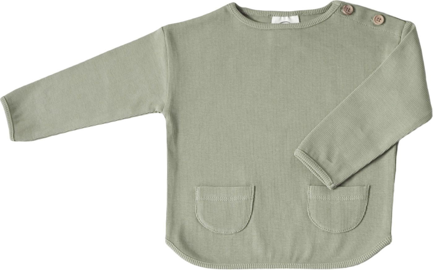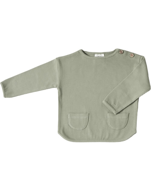 Schönes Sweatshirt aus GOTS-zertifizierter Bio-Baumwolle mit einer feinen Rippenstruktur von COSY ROOTS. Der leicht oversize geschnittene Sweater passt sich dem Körper an und ist durch das samtweiche Material angenehm zu tragen. Bis Größe 74/80 mit Knöpfen am Halsausschnitt. Ein besonderes Detail sind die zwei kleinen Taschen auf der Vorderseite.