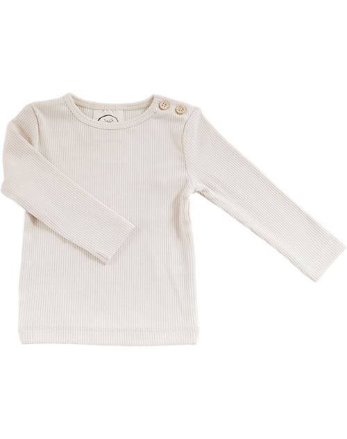 Schönes, weiches und tailliert geschnittenes Langarm-Shirt aus GOTS-zertifizierter Bio-Baumwolle mit einer feinen Rippenstruktur von COSY ROOTS. Die Knöpfe an der Schulter erleichtern das An- und Ausziehen. Das weiche Material hat einen hohen Tragekomforrt.