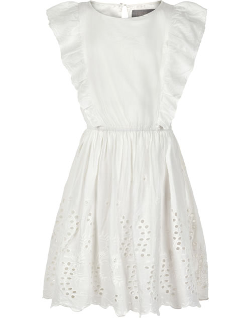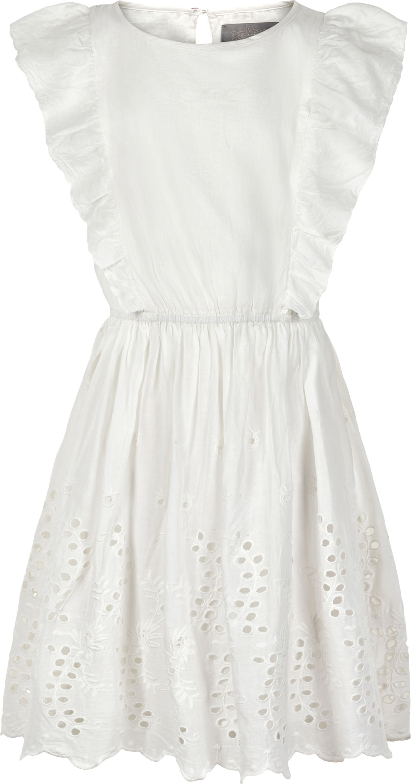Das wunderschöne Baumwollkleid in weiß mit verspielten Schmetterlingsärmeln von CREAMIE für Mädchen ist ein absoluter Blickfang und wird schnell zu einem Lieblingsstück. Ein bezauberndes Lochmuster zaubert einen romantischen Look. Unterhalb der Taille ist das Kleid abgesteppt sodass der Rock großzügig und weit fällt. Ein Unterrock sorgt für entsprechende Blickdichte. Mit einem kleinen Perlmuttknopf im Nacken lässt sich das Sommer-Kleid schließen.