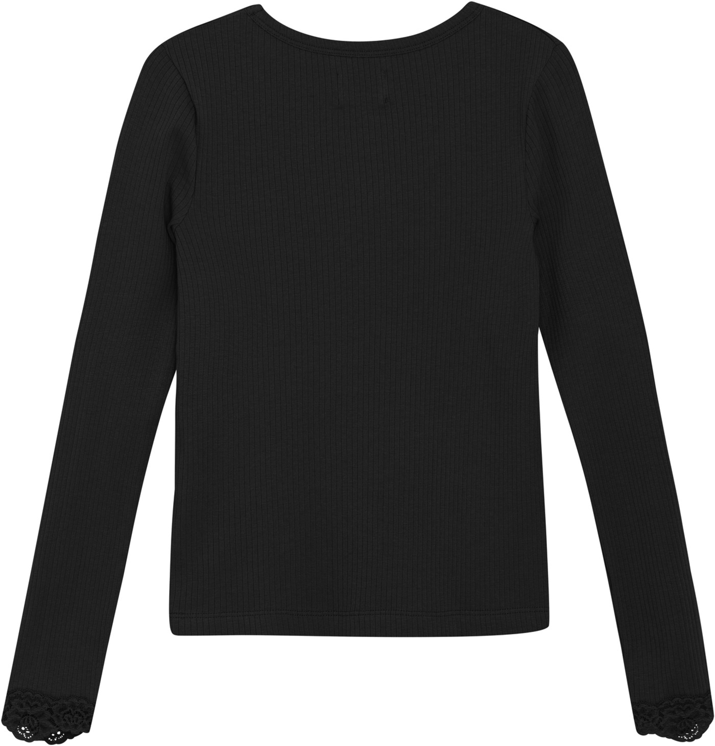Dieses hübsche Langarmshirt mit Rippoptik ist im Farbton Schwarz gehalten. 🖤
