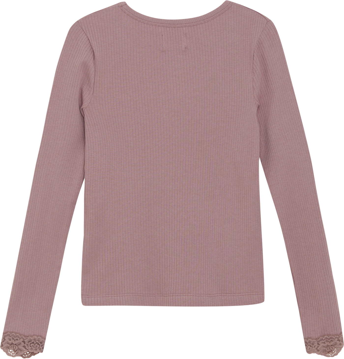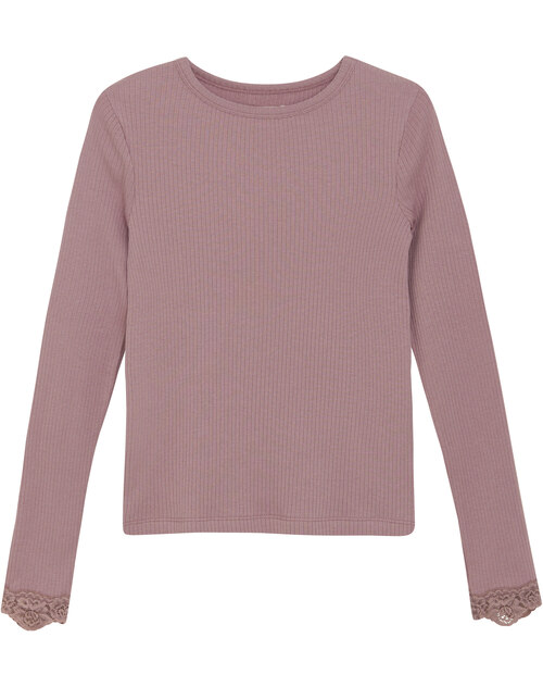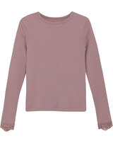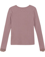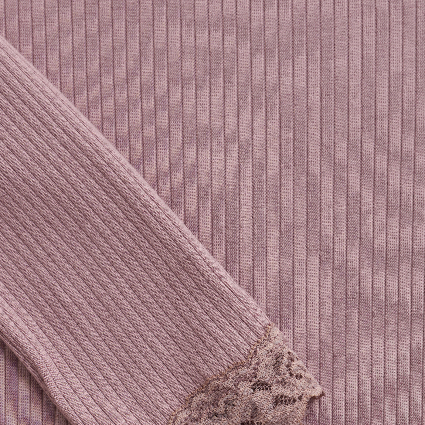 Dieses hübsche Langarmshirt mit Rippoptik ist im Farbton Altrosa gehalten. 🩷