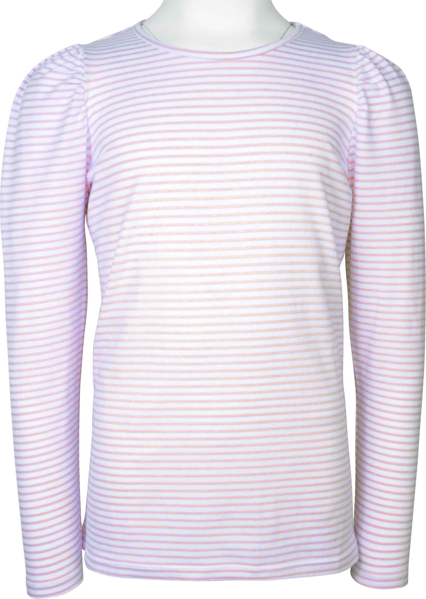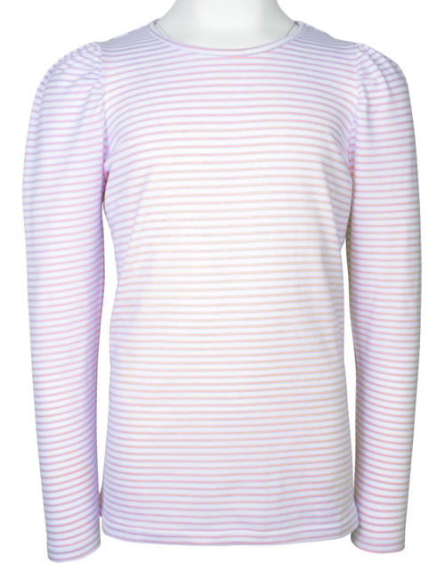 Gestreiftes Langarm-Shirt für Mädchen von CREAMIE. Es läßt sich prima kombinieren und ist zudem ein schöner Blickfang. Besonders schön sind die kurzen Puffärmel.