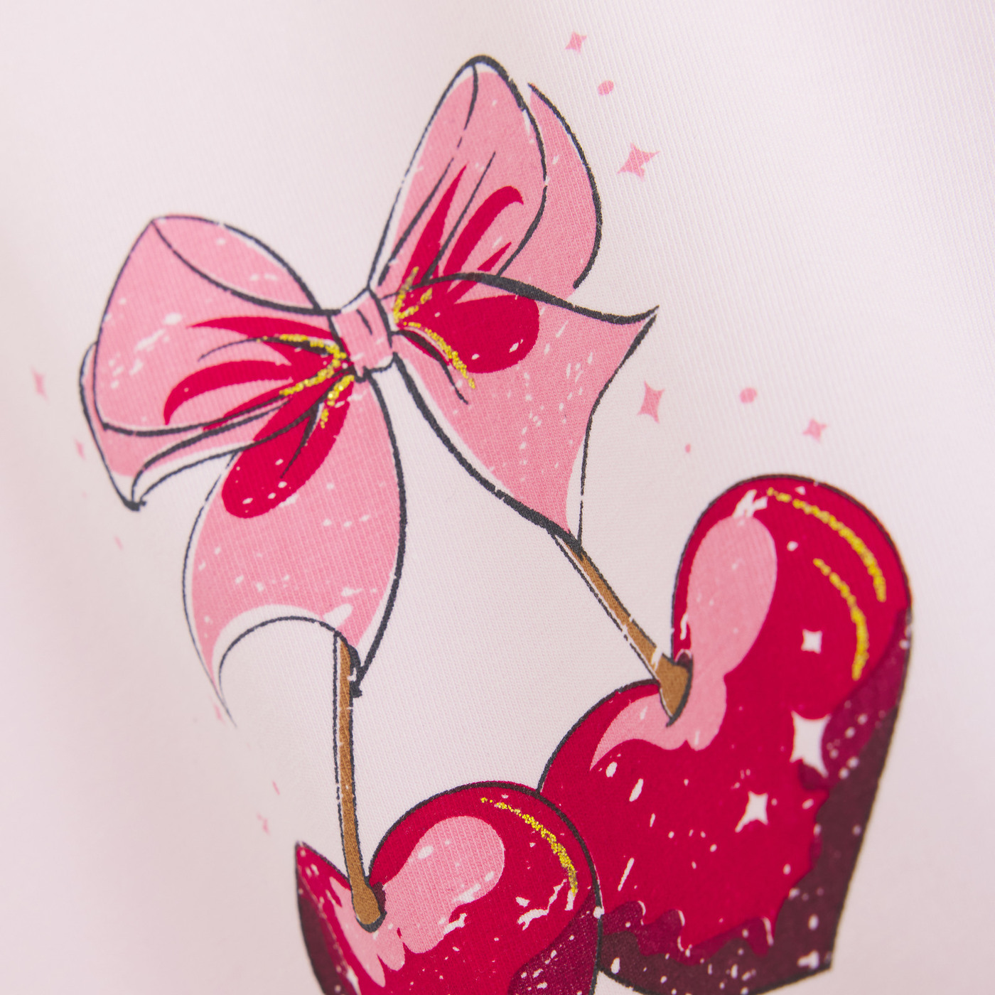 Es hat einen Rundhalsausschnitt und begeistert mit der süßen aufgedruckten Kirsche auf der Vorderseite, die mit ein wenig Glitzer verziert ist. 🍒😍