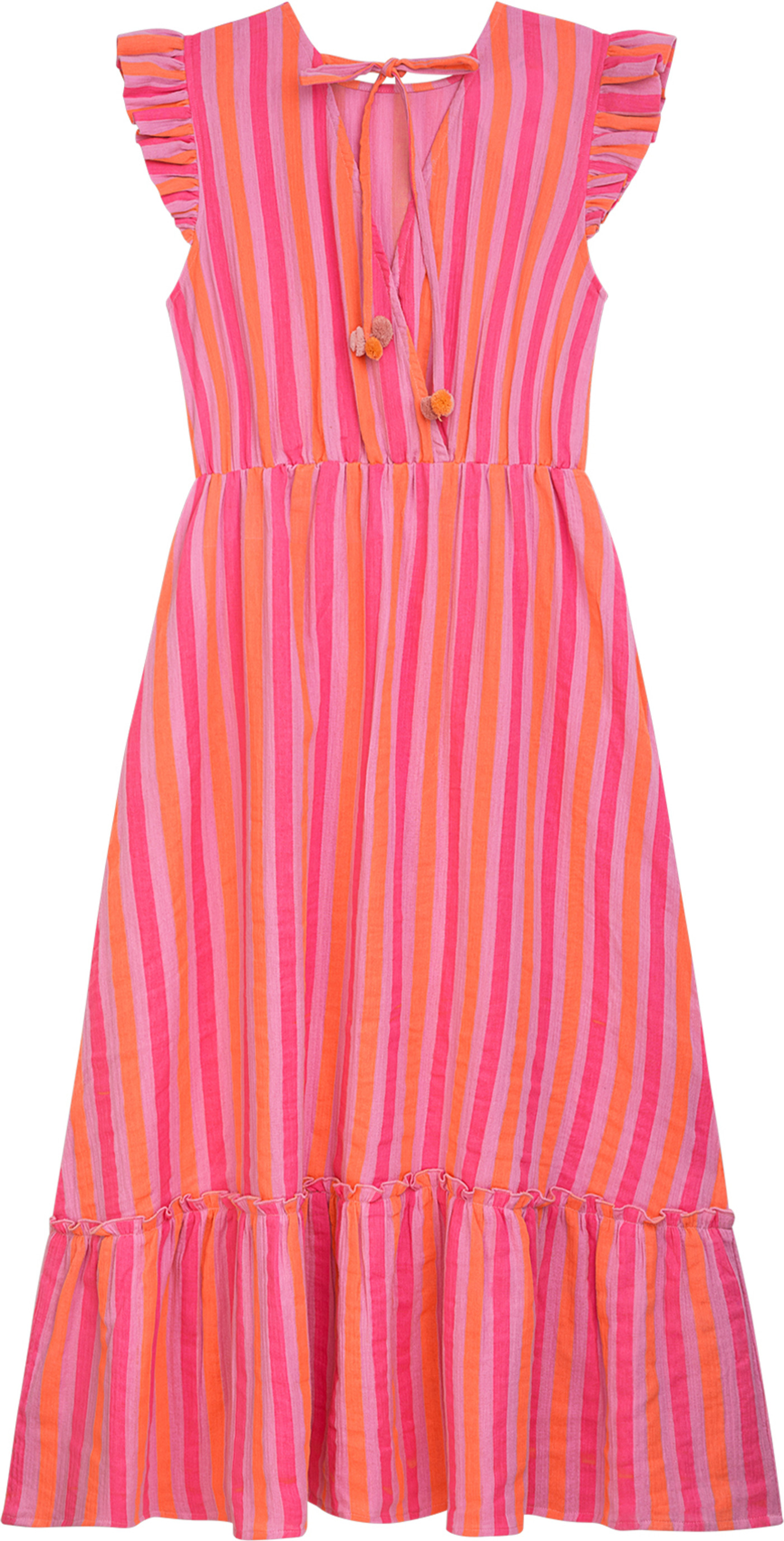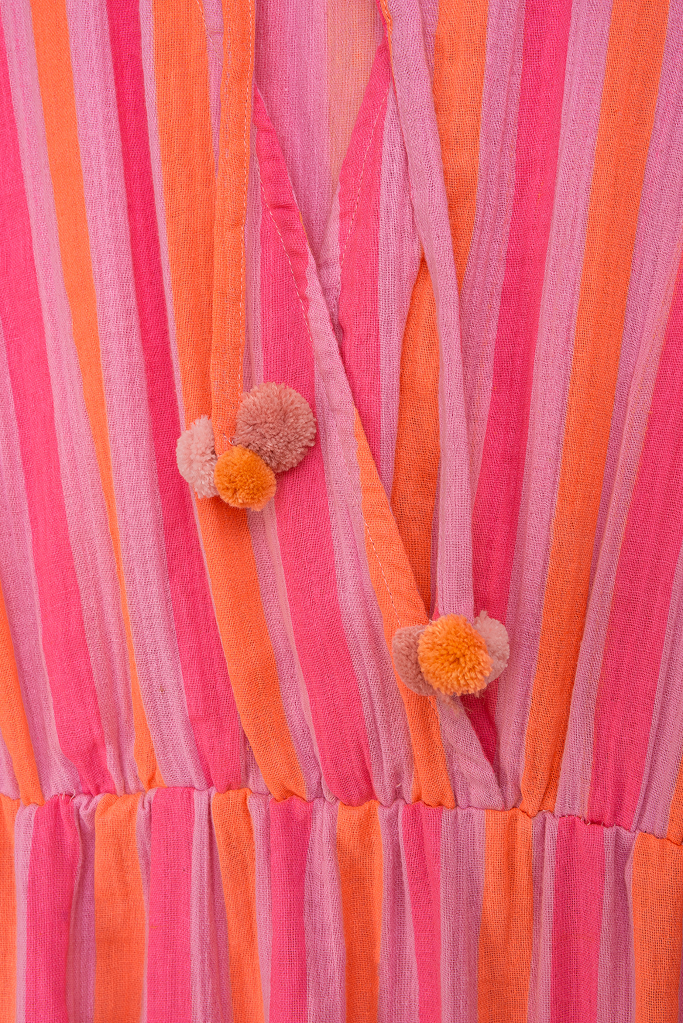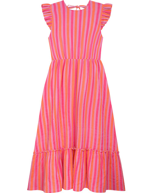 Dieses gestreifte Kleid in leuchtendem Neon Pink überzeugt mit einer femininen, sommerlich-leichten Ausstrahlung ☀️