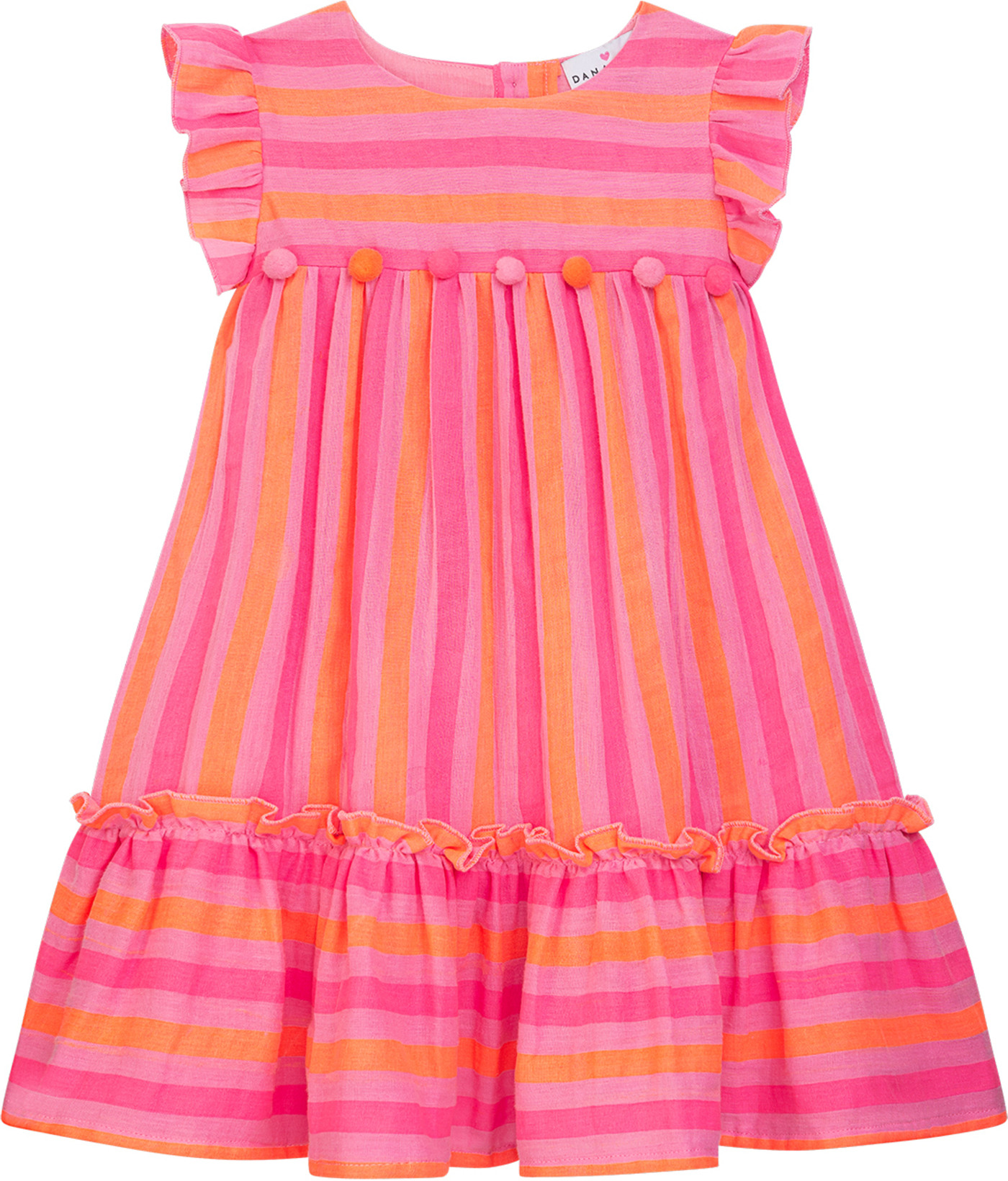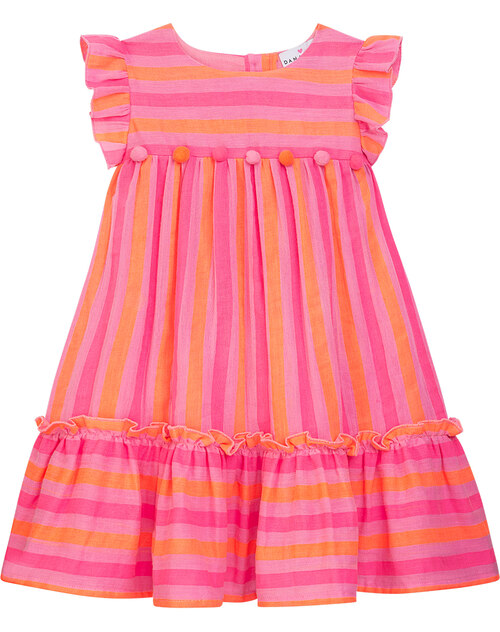 Danamade Kinder-Kleid 'Djennie' im Streifen-Design aus Baumwolle - Neon Pink 💗🧡💗