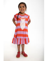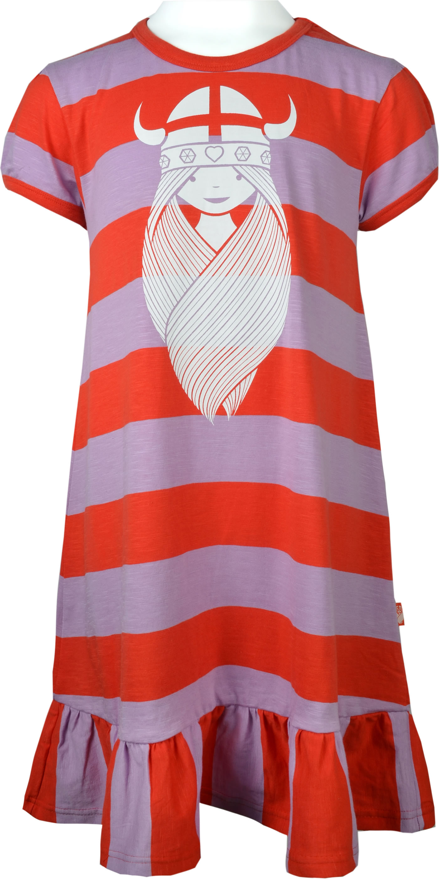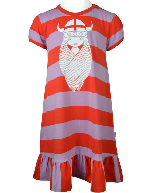 Locker geschnittenes Jersey-Kleid im schönen Ringel-Design mit kurzen Ärmeln von DANEFAE. Auf der Vorderseite bezaubert die Wikingerprinzessin Freja. Ein weiteres hübsches Detail ist die breite angesetzte Rüsche,das dem Kleid eine feminine Note gibt. Das angenehme Material bietet einen hohen Tragekomfort.