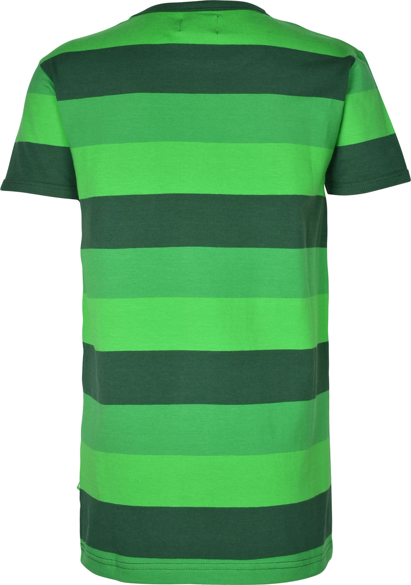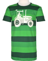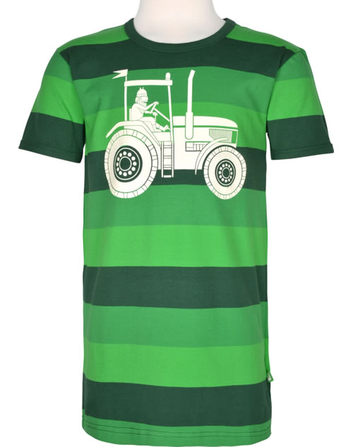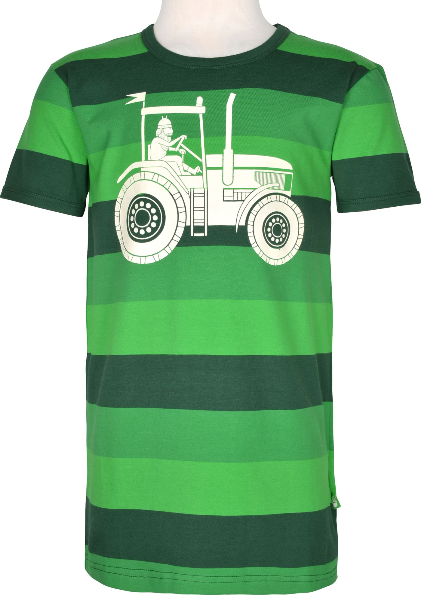 Kurzarm-Shirt von DANEFAE in grün gestreift mit Wikinger und Traktor auf der Vorderseite. Das weiche Material sorgt für einen angenehmen Tragekomfort.