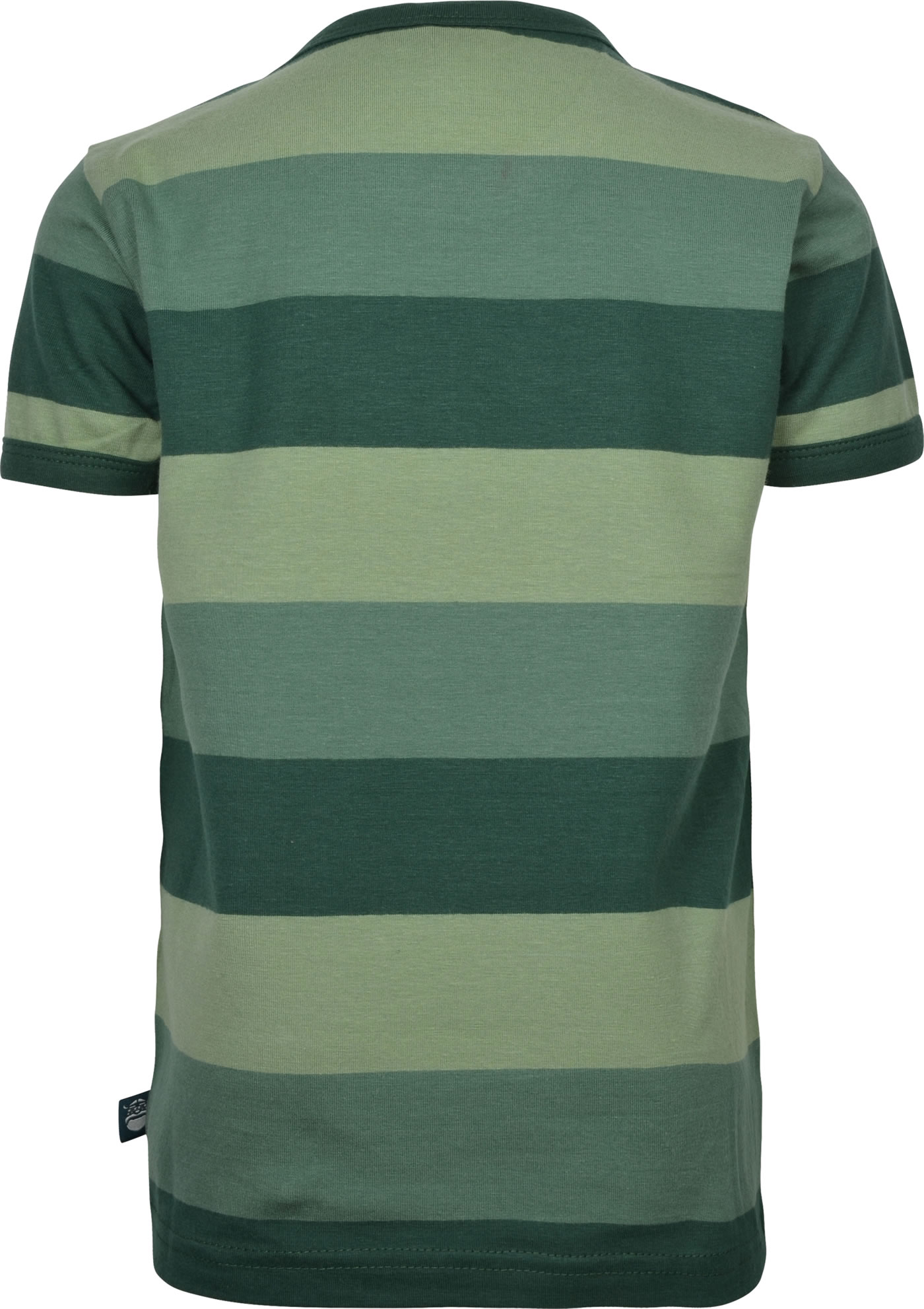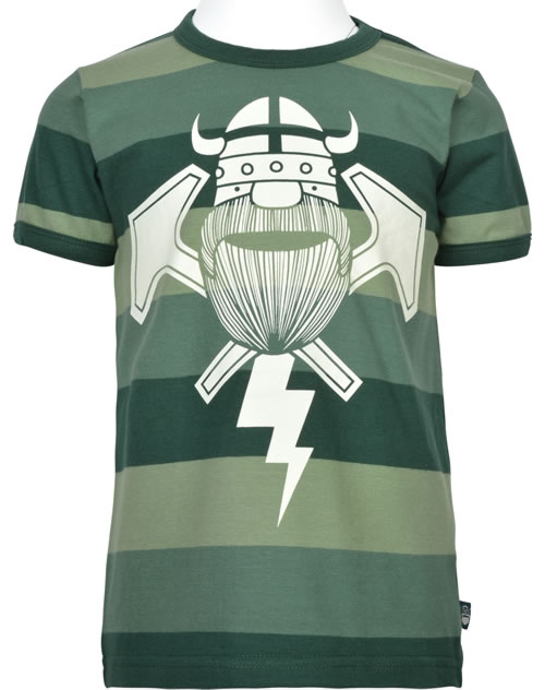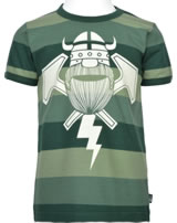 Grün gestreiftes Kurzarm-Shirt von DANEFAE mit tollem Print von Wikinger Erik auf der Vorderseite. Das weiche Material sorgt für einen angenehmen Tragekomfort.