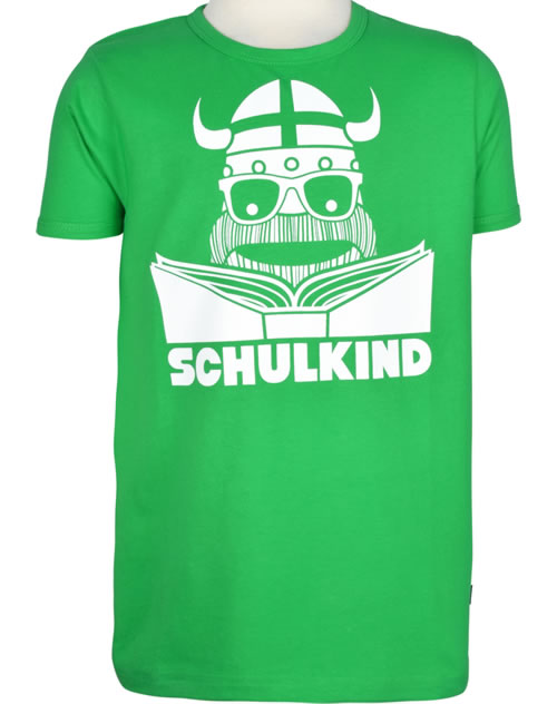 Tolles Kurzarm-T-Shirt Schulkind Erik für Jungen von DANEFAE. Die Vorderseite des Shirts ziert der Wikinger Erik mit einem Buch. Ein Muss für alle Schüler und angehenden Schüler.