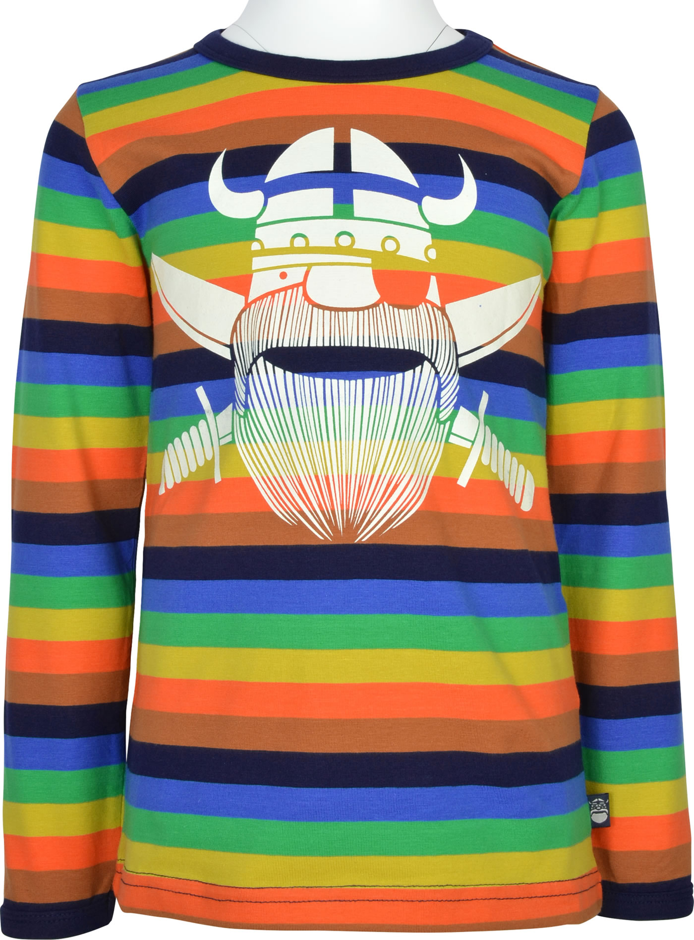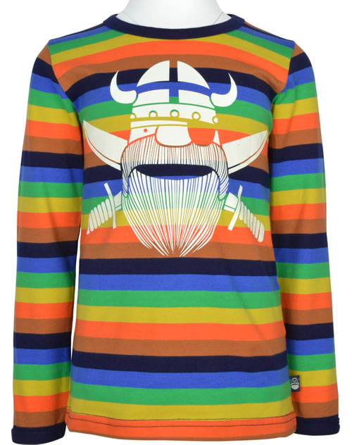 Dieses tolle Langarm-Shirt von DANEFAE in bunt gestreift ist ein toller Begleiter für kühle Tage. Auf der Vorderseite des Shirts befindet sich der Wikinger Erik als cooler Pirat. Das Material ist weich und elastisch und sorgt damit für einen guten Tragekomfort.