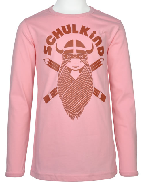 Tolles Langarm-T-Shirt SCHULKIND von DANEFAE für Mädchen. Die Vorderseite des Shirts ziert die Wikinger-Prinzessin Freja. Ein Muss für alle Schüler und angehenden Schulkinder.