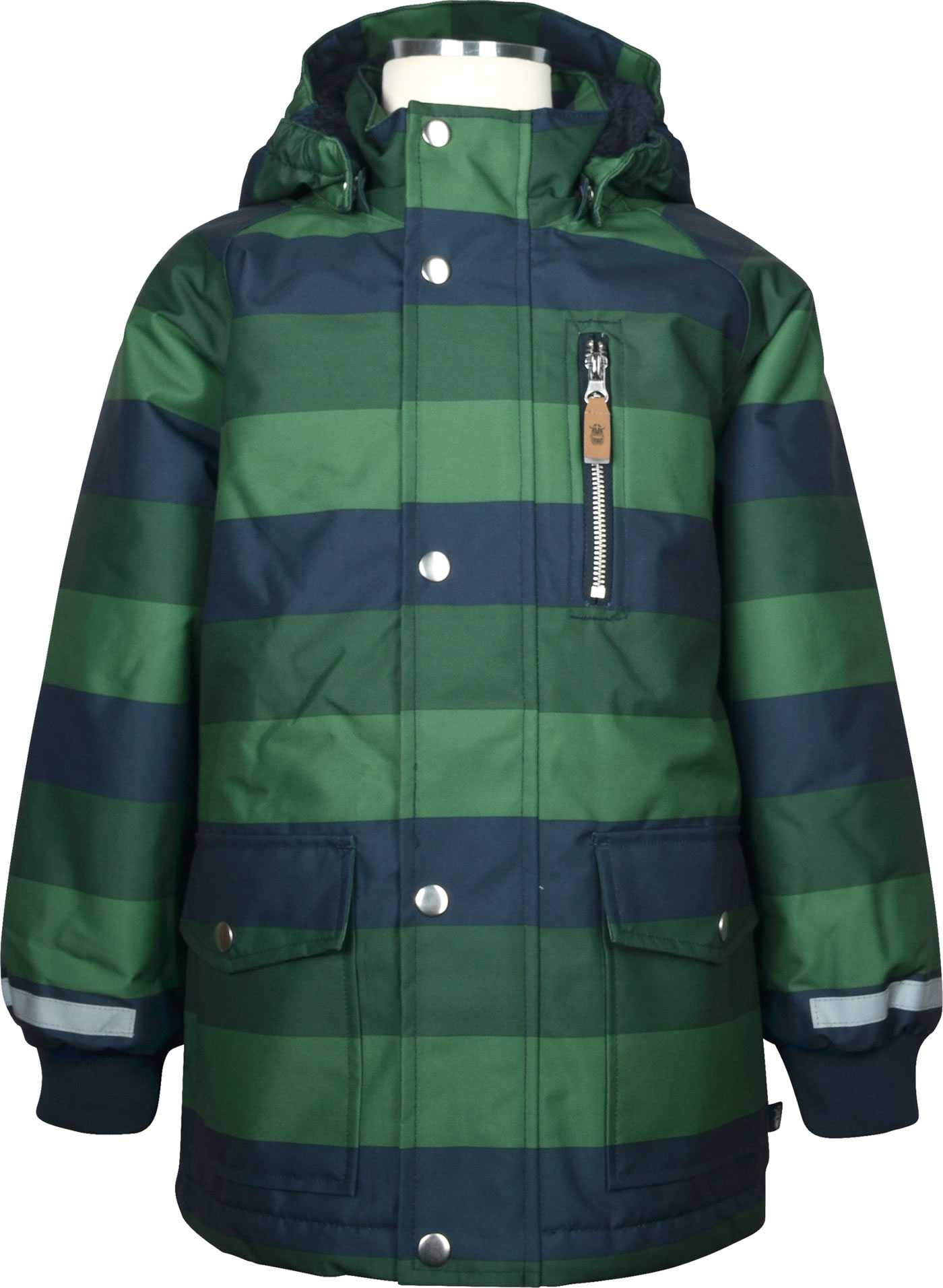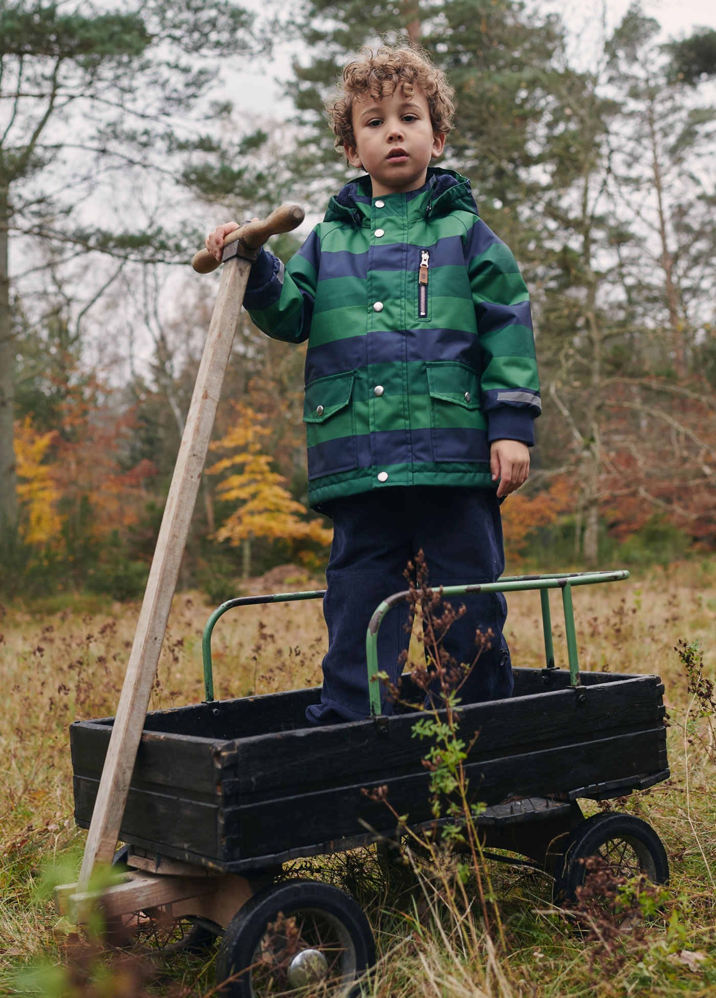 Diese tolle Funktions-Jacke für Jungen von DANEFAE in peppiger Streifen-Optik ist der ideale Begleiter für alle Outdoor-Aktivitäten. Weiche Bündchen an den Ärmeln sorgen für einen guten Sitz und einen hohen Tragekomfort. Die Rückseite ist etwas länger geschnitten. Der Saum lässt sich durch einen Gummizug in der Weite verstellen. Auf dem Rücken sorgt der reflektierende Wikinger für eine gute Sichtbarkeit im Dunkeln.