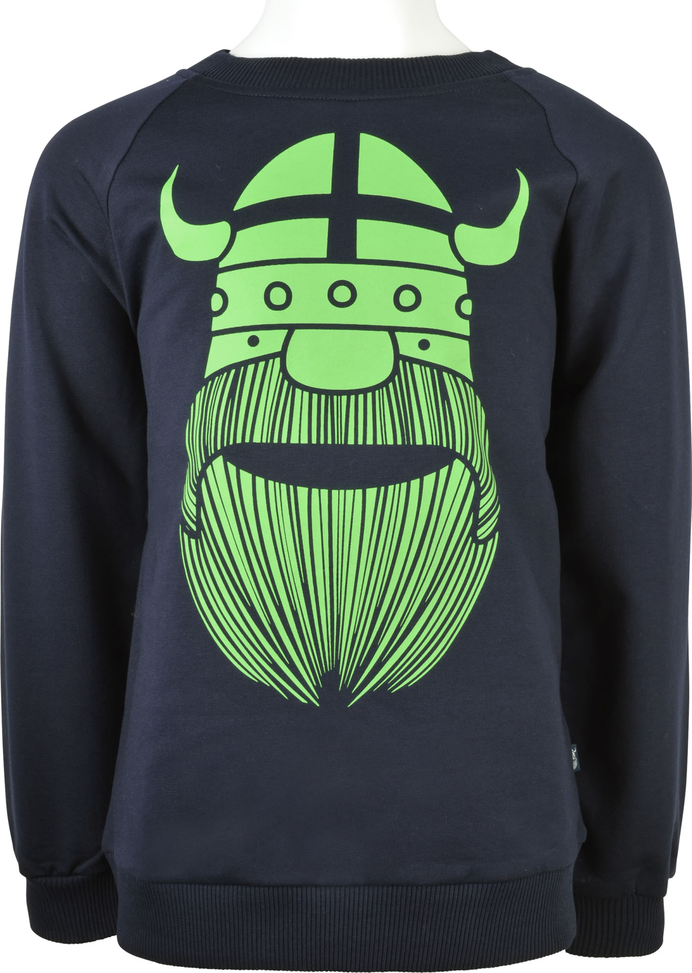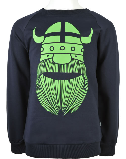 Hochwertig verarbeitetes Langarm-Sweatshirt in der Farbe navy von DANEFAE mit dem Wikinger Erik als Druck auf der Vorderseite. Das Sweatshirt ist von Innen kuschelig weich angeraut, so hält es an kühleren Tagen schön warm.