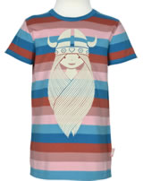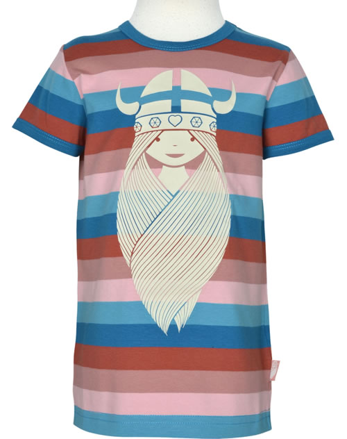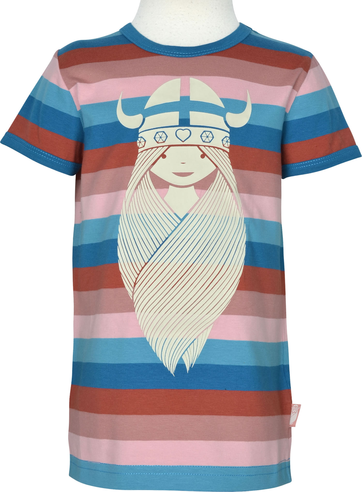 Hochwertiges Kurzarm-Shirt in bunt gestreift mit schönem Wikinger-Prinzessin-Print von DANEFAE. Das weiche Material sorgt für einen hohen Tragekomfort.