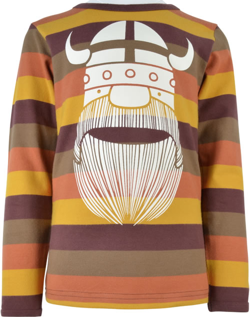 Dieses tolle Langarm-Shirt von DANEFAE in gestreift ist ein toller Begleiter für kühle Tage. Auf der Vorderseite des Shirts befindet sich der Wikinger Erik in weiß. Das Material ist weich angeraut und sorgt damit für einen hohen Tragekomfort.