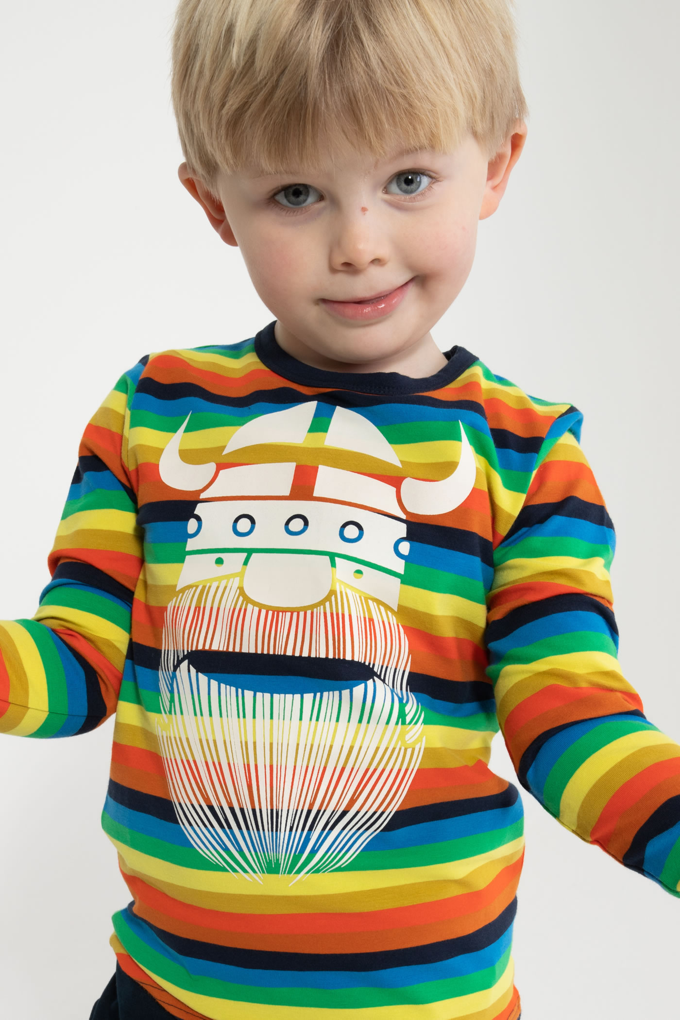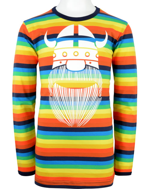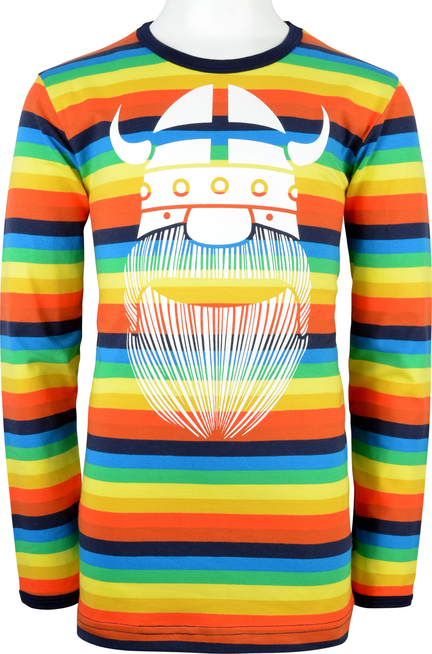 Dieses tolle Langarm-Shirt von DANEFAE in bunt gestreift ist ein toller Begleiter für kühle Tage. Auf der Vorderseite des Shirts befindet sich der Wikinger Erik. Das Material ist weich und elastisch und sorgt damit für einen guten Tragekomfort.