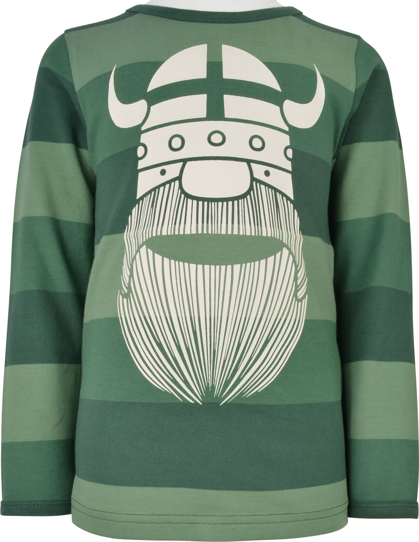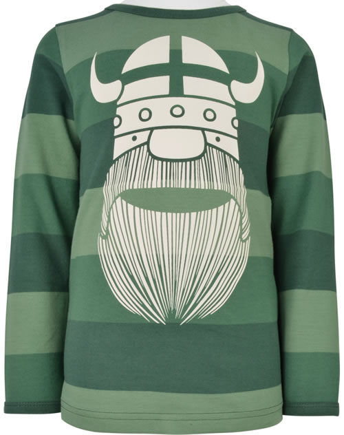 Dieses tolle Langarm-Shirt von DANEFAE in grün gestreift ist ein toller Begleiter für kühle Tage. Auf der Vorderseite des Shirts befindet sich der Wikinger Erik als Pirat. Das Material ist weich und elastisch und sorgt damit für einen guten Tragekomfort.