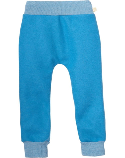 Sehr bequeme und hochwertige Sommer-Walkhose aus Schurwolle für Babys und Kleinkinder von DISANA. Das Material unterstützt ein gesundes Hautklima. Mit breiten Rippbündchen an Bauch und den Fußenden.