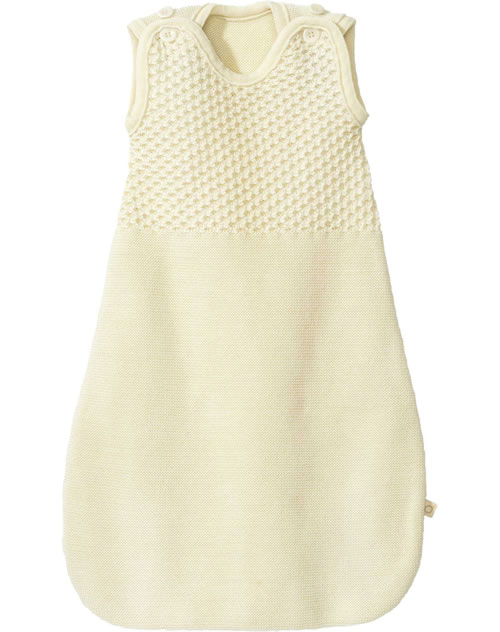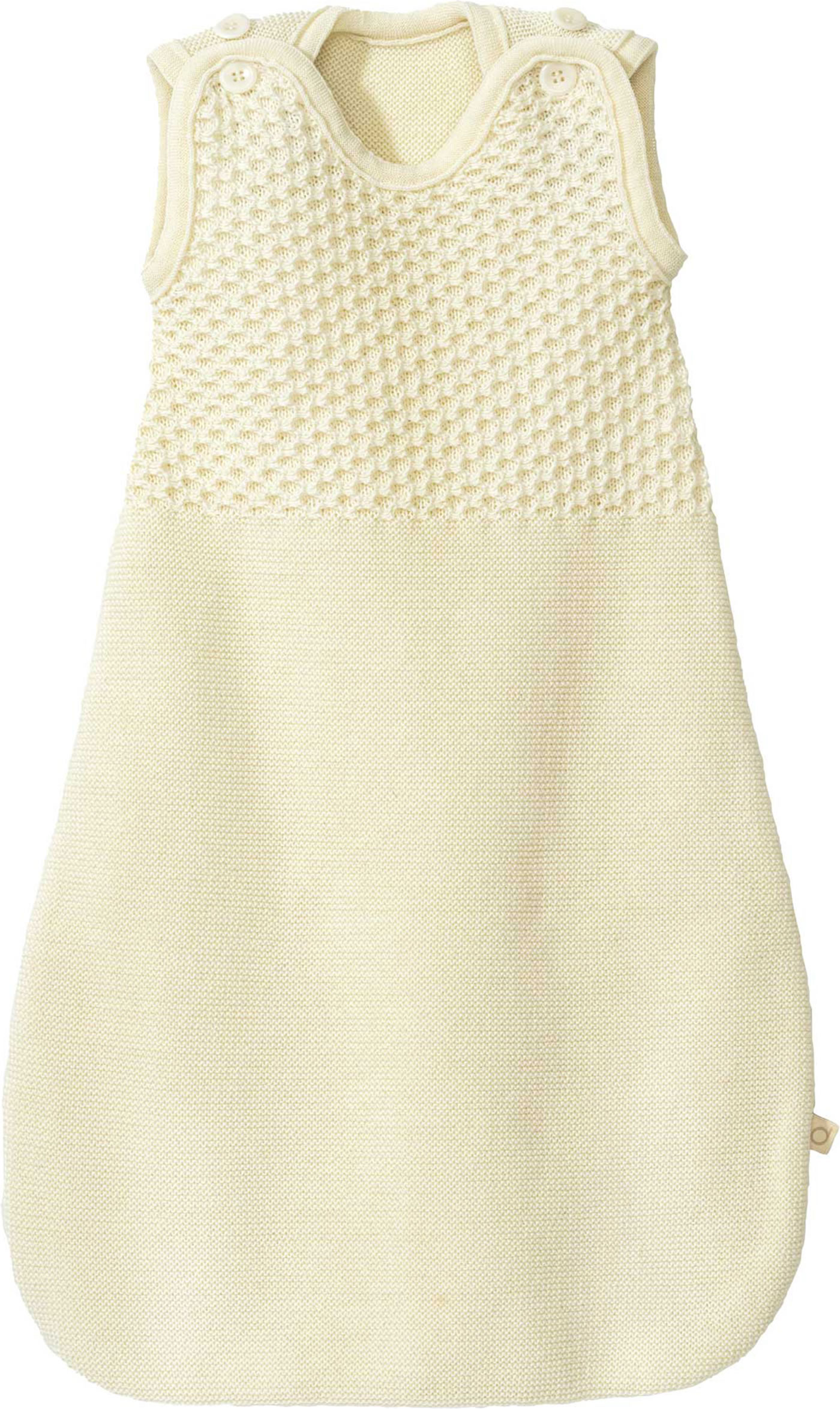 Hochwertiger Schlafsack aus gestrickter Schurwolle von DISANA. Auch bei kühleren Temperaturen hält der fein gearbeitete Stoff aus Bio-Merinowolle wohlig warm und unterstützt ein gesundes Hautklima. Dank der Knöpfe auf den Schultern wird das An- und Ausziehen zum Kinderspiel.