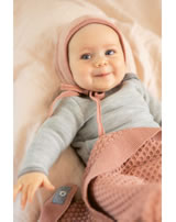 Hochwertige Woll-Decke für das Baby mit feinem Waben-Muster und gestricktem Rand von DISANA aus feiner Schurwolle. Der ideale Begleiter für alle Gelegenheiten - zum Unterlegen beim Krabbeln oder zum Einwickeln. Sie ist sehr leicht und hält trotzdem kuschlig warm und wirkt temperaturausgleichend. Naturbelassene Merino-Schurwolle zeichnet sich durch ihre besondere Feinheit aus, ist wunderbar weich und angenehm auf der Haut. DISANA Merino-Wolle kratzt nicht. Sie verschmutzt kaum und gleicht Temperaturen gut aus. DISANA Merino-Schurwolle ist "Mulesing frei".