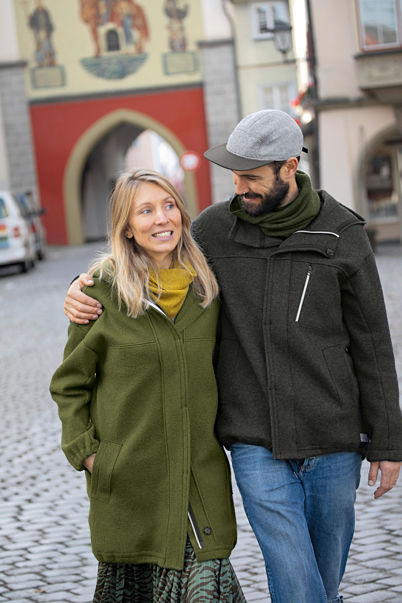 Ich war schon länger auf der Suche nach einem Wollmantel und bin bei diesem nun fündig geworden. Der Schnitt ist weit aber dennoch feminin. Normalerweise trage ich Größe M, habe mich hier aber für S entschieden. Der Mantel ist recht weit geschnitten und nicht figurbetont. Selbst mein kleiner Tragling passt bei S noch mit unter den Mantel. Die Farbe Olive ist richtig schön, nicht zu dunkel sonder sehr strahlend. Da es sich um einen Wollmantel handelt muss man damit rechnen, dass starker Wind darunter zu spüren ist.