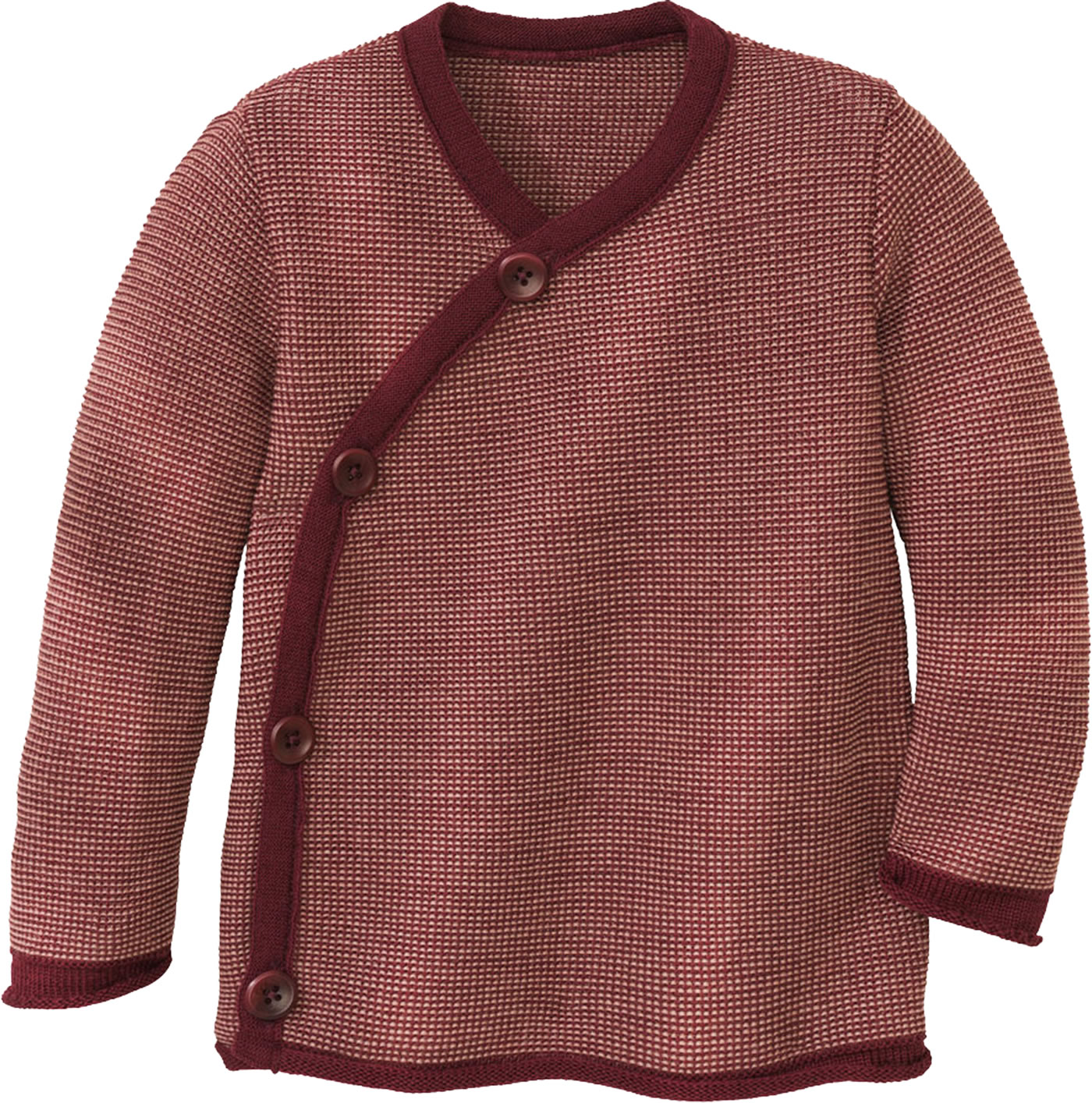 Wunderbar weiche Merinowolle-Jacke in edlem Melange-Strick von DISANA. Sie bietet viel Bewegungsfreiheit und engt nicht ein, da sie besonders dehnfähig und elastisch ist. Steinnuss-Knöpfe außen und ein Bindeband auf der Innenseite sorgen für einen sicheren Verschluss.